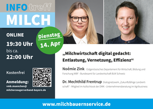 Sharepic INFOtreff Milch am 14. April 2026 mit Noemie Zink und Dr. Mechthild Frentrup