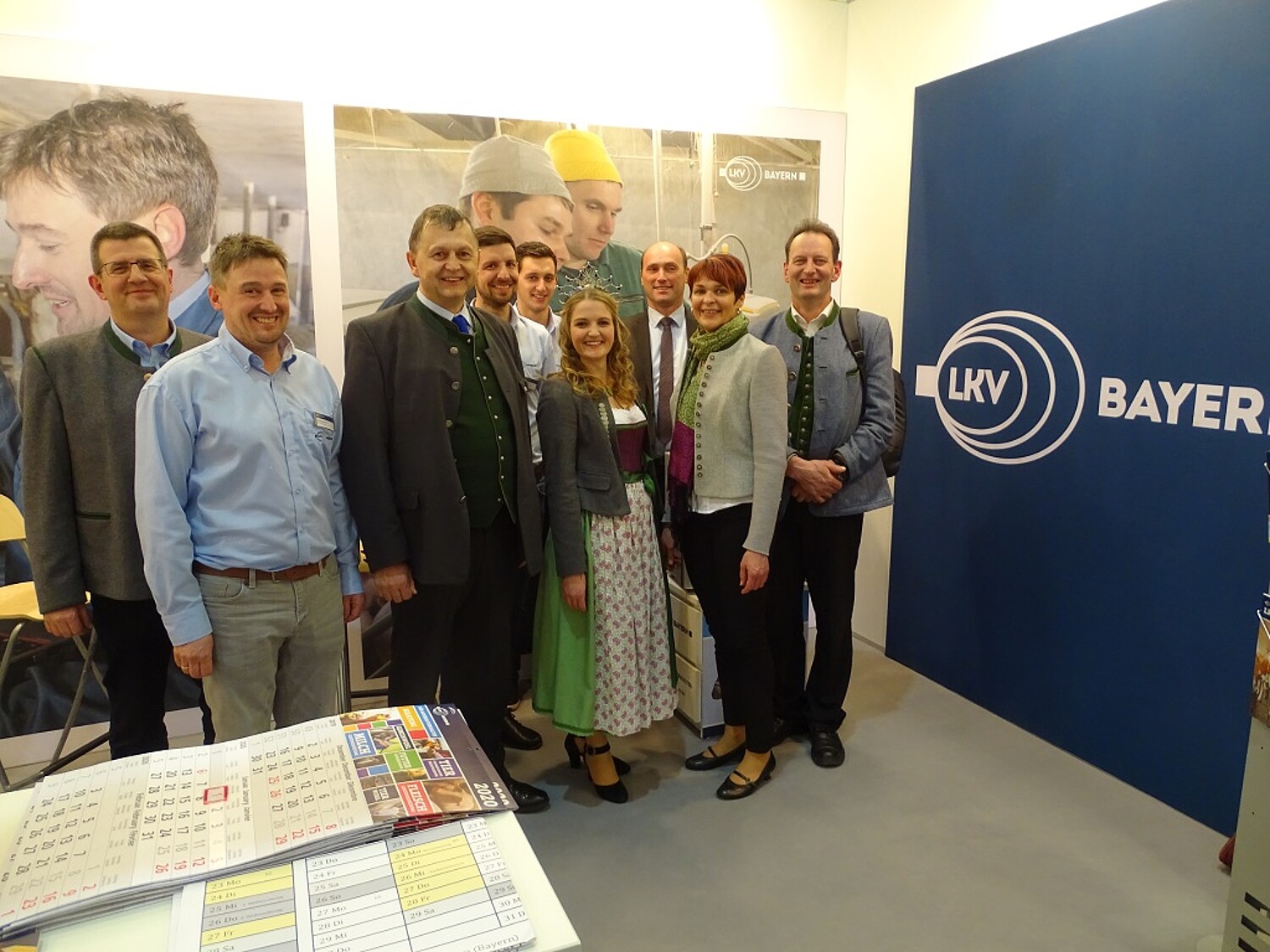 Bild 2: Milchprinzessin Miriam Weiß zusammen mit VMB-Vorsitzender Wolfgang Scholz (r.), Karina Fischer (Kreisbäuerin OAL und VMB-Delegierte, 2.v.r.), Bezirkspräsident Alfred Enderle (3.v.r) am Stand des LKV Bayern mit Geschäftsführer Ernest Schäffer (3.v.l) und Mitarbeiter