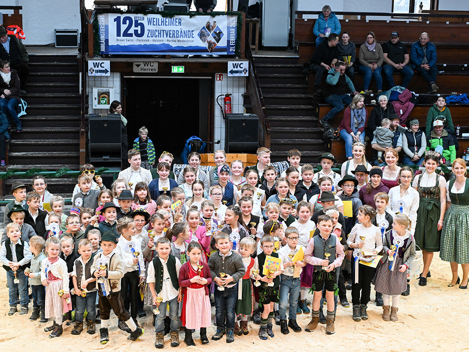 Am 21. Februar 2026 fand anlässlich des 125-jährigen Bestehens der Weilheimer Zuchtverbände eine große Tierschau in der Hochlandhalle in Weilheim statt. Neben Schirmherrin und Landesbäuerin Christine Singer, MdEP, waren die Bayerische Milchkönigin Elisabeth Heimerl und die Bayerische Milchprinzessin Verena Wagner als geladene Gäste dabei und mit ehrenvollen Aufgaben bedacht. Erster Höhepunkt war der mit Spannung erwartete Bambini-Wettbewerb mit der Zuchtleiterin Dr. Paula Heine und den Bayerischen Milchhoheiten. Insgesamt 76 Kinder und Jugendliche im Alter von 3-14 Jahren haben mit Eifer und Geschick den Geschicklichkeits-Parcour bestritten. Am Ende nahmen alle Teilnehmer stolz ihre Pokale, überreicht von den Milchhoheiten, mit nach Hause.