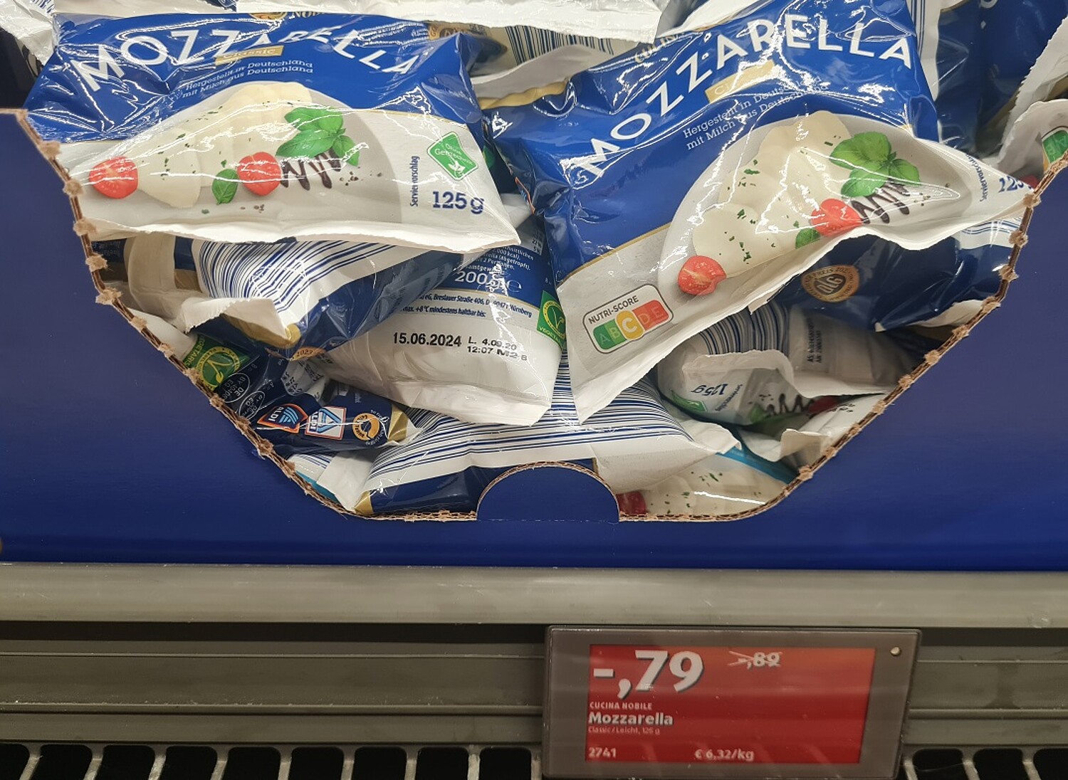 Und ALDI setzt in der aktuellen KW 22 noch ein weiteres "Preishighlight": Der vergangene Woche erst preisreduzierte Mozzarella liegt diese Woche statt des neuen Preises von 79 Cent als eines der vielen Wochenangebote um 17 Prozent reduziert für nur 65 Cent/125 g (Abtropfgewicht) im Kühlregal. Wie schon gesagt: Der Lebensmittelhandel hat (oft) seine eigenen (Preis) Regeln!