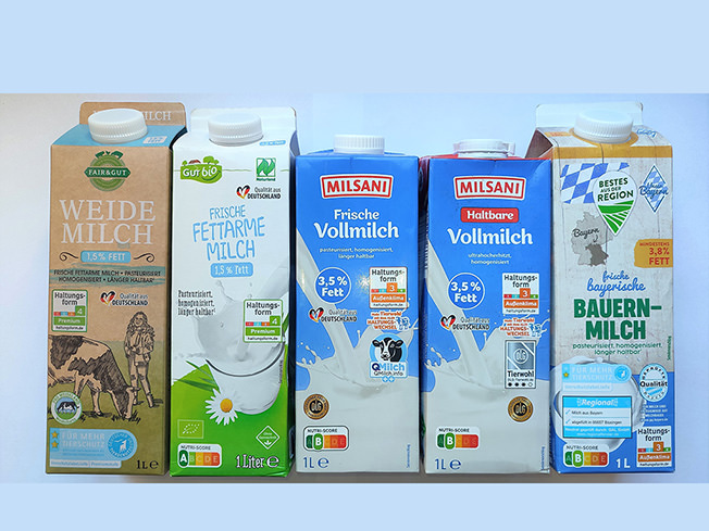 Beim Blick ins Milchregal bei Aldi kann man tatsächlich erkennen, wie in den letzten beiden Jahren vermehrt Trinkmilchen mit den Haltungsstufen 3 und 4 ausgelobt wurden: Mit einem (Standard) oder 2 (Premium) Sternen des Deutschen Tierschutzbundes, auch regional erhältliche Bauernmilch bis zu den Milchen der Eigenmarke "Fair & Gut", sowie Weide- und Biomilch. Und dazu kam vor kurzem auch die Trinkmilch der Eigenmarke „Milsani“ mit Haltungsstufe 3. Besonders ärgerlich: Diese Trinkmilch zum Einstandspreis der Eigenmarke „Milsani“ wurde ohne Preisaufschlag auf die höhere Haltungsstufe umgestellt, kostet als Vollmilch weiter nur 99 Cent/Liter. Der Geldbeutel des Verbrauchers wird geschont. Das ist natürlich gut für das Image des LEH und die Verbraucherschaft kann weiter ungeniert höhere Tierwohlstandards fordern. Wie lange noch?