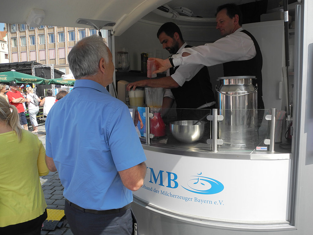 Frisch gemixte kühle Milch-Cocktails wie Pina Colada, Mango-Maracuja, Espresso-Shake und Jo-Jo-Fit lockten Durstige zur überdimensionalen Milchkanne des VMB (Verband der Milcherzeuger Bayern), wo die Bayerische Milchprinzessin Miriam Weiß interessierten Verbrauchern für Fragen zur Verfügung stand.