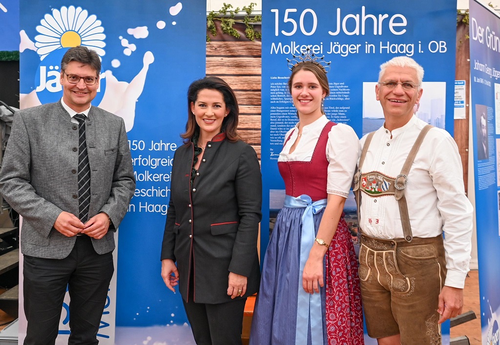 Am 29. September veranstaltete das Milchwerk Jäger seinen traditionellen Bauerntag. Firmenchef Hermann Jäger nahm die Veranstaltung auch zum Anlass, seine Jubiläumsfeier nachzuholen. 2020 ist die älteste Privatmolkerei Deutschlands nämlich 150 Jahre alt geworden und wegen Corona musste die Feier entfallen. Neben Landwirtschaftsministerin Michaela Kaniber gehörte auch die Bayerische Milchprinzessin zu den Ehrengästen und in ihrem Grußwort gratulierte sie Hermann Jäger, seinen Mitarbeitern und Milchlieferanten zu diesem besonderen Jubiläum.