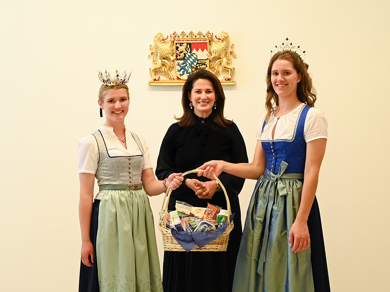 Bild oben: v.l. Bayerische Milchkönigin Veronik Gschoßmann, Staatsministerin Michaela Kaniber, Bayerische Milchprinzessin Philomena Mögele