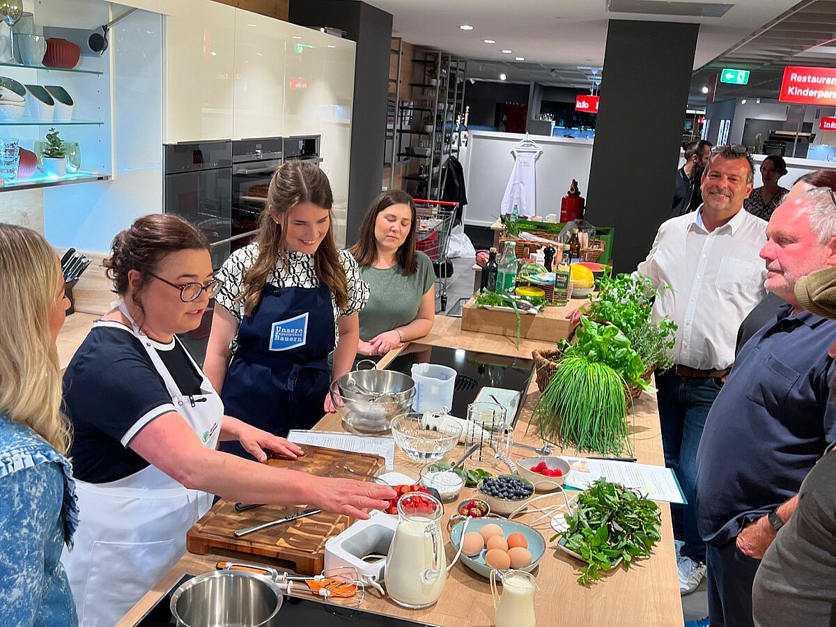 In der Sendung „Bayerische Landfrauen kochen auf …einfach regional genießen!“ am Sonntag war die Bayerische Milchkönigin Elisabeth Heimerl zu Gast und hat zusammen mit der Köchin Evi von den Bayerischen Landfrauen den Klassiker „Bayrisch Creme“ zubereitet. Die Kochsendung ist eine Kooperation der bayerischen Landfrauen mit münchen.tv und dem Verein "Unsere Bayerischen Bauern". Darin bereiten bayerische Landfrauen und landwirtschaftliche Expertinnen und Experten zweiwöchentlich spannende regionale Gerichte zu. Die ganze Folge kann unter dem Link https://unsere-bauern.de/bayerische-landfrauen-kochen-auf/ angeschaut werden, und dort ist das Rezept auch veröffentlicht.