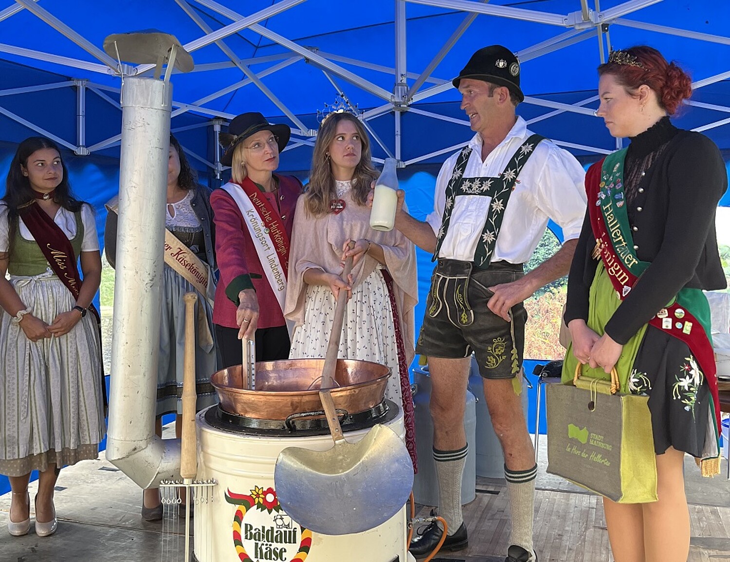 Am 26. und 27. August lud Lindenberg zum 20. Mal zum Internationalen Käse- und Gourmetfestival mit über 70 Ausstellern aus neun Ländern ein. Die Bayerische Milchprinzessin stattete zusammen mit fünf weiteren Produktköniginnen dieser Traditionsveranstaltung einen Besuch ab. Beim Schaukäsen der örtlichen Käserei Baldauf führte der Käsemeister Alois Keck sie in die Geheimnisse des Käsens ein. Beim anschließenden Rundgang gab es für die Milchprinzessin neben dem geschützten Allgäuer Emmentaler und Allgäuer Bergkäse bei den zahlreichen Sennereien und Käsereien die eine oder anderen weitere Käseschmankerl zu entdecken. Ein weiteres Highlight war die gemeinsame Kutschfahrt mit einem Ziegengespann durch Lindenbergs Straßen.