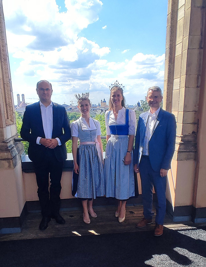 Bild oben: v.l. Gesundheitsminister Klaus Holetschek, Landwirtschaftsministerin Michaela Kaniber, Bayerische Milchhprinzessin Philomena Mögele, Bayerische Milchkönigin Veronika Gschoßmann, Landtagspräsidentin Ilse Aigner, Peter Tomaschko, MdL