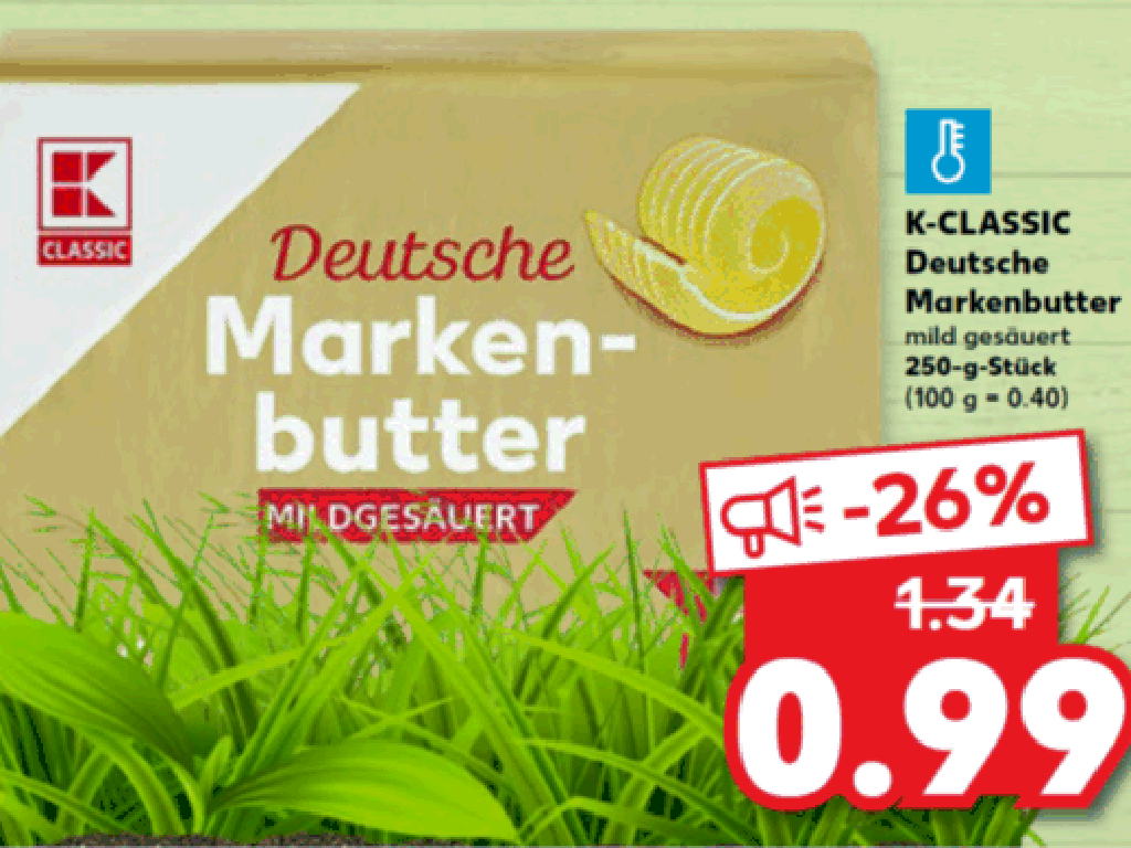 Trotz der Erhöhung der Butterpreise für die Eigenmarken des Handels erreichen aber deren Wochenangebote ein (Tiefpreis) Niveau, das vor kurzem in dieser Form nicht für möglich gehalten wurde. Waren es bisher vornehmlich die bekannten Molkereimarken, die befristet zu einem "attraktiven Preis" angeboten wurden, machten in der jüngsten Vergangenheit erneut zwei Angebote mit Eigenmarken negative Schlagzeilen: Vergangenen Samstag bot NETTO Markendiscount Markenbutter seiner Eigenmarke "Gutes Land" für nur 1,11 Euro/250 g anstelle von vermeintlich 1,34 Euro/250g für den bis Ende Anfang März gültigen Endverbraucherpreis (EVP) an. Vermeintlich deswegen, obwohl der EVP am letzten Samstag bereits auf 1,45 Euro/250 g angehoben war. Und dem nicht genug: Eine Woche lang lag - bis vorgestrigen Mittwoch - bei KAUFLAND der 250 g Ziegel der Eigenmarke "Classic" für nur 99 Cent im Kühlregal: Das war eine "Verbilligung der Billigbutter" um nochmals 45 Prozent, bezogen auf den aktuell gültigen EVP. Man stellt sich die Frage: Wann ist bei solch bodenlosen Angeboten die Bodenbildung erreicht?