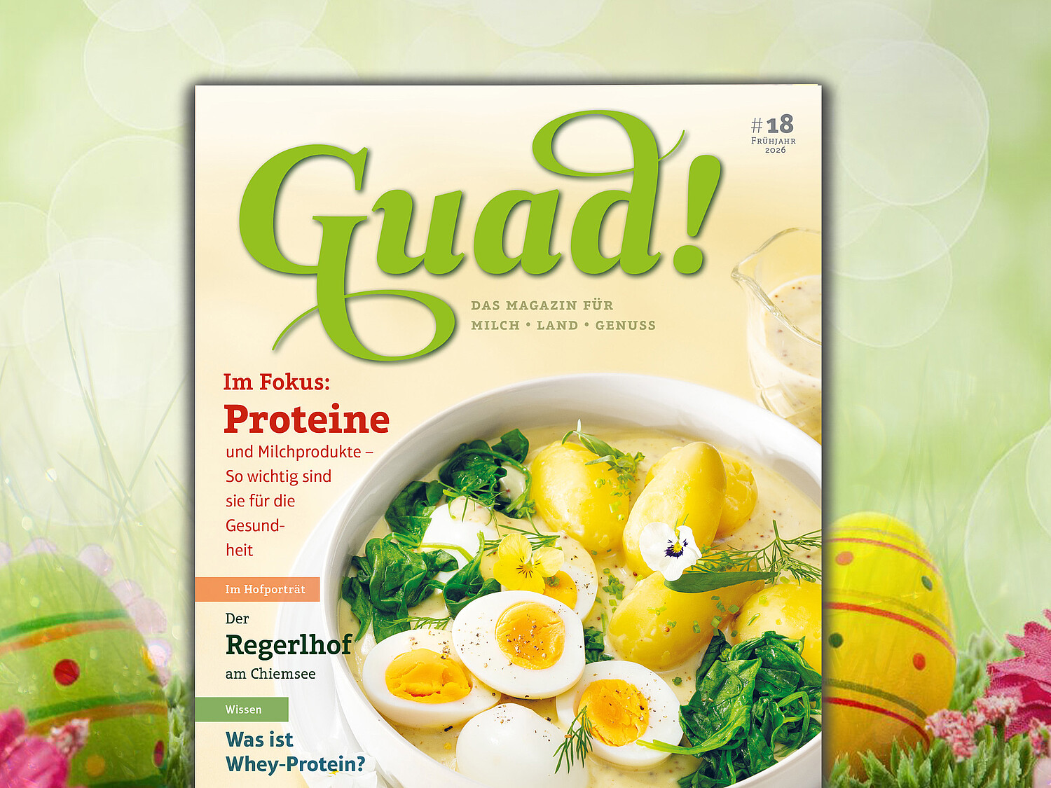 Welche Rolle Proteine für die Gesundheit spielen und was Milch und Milchprodukte dazu beitragen - das lesen Sie in der neuen GUAD! Außerdem ein Hofportrait über den Regerlhof am Chiemsee und tolle Frühlingsrezepte für Ostern. Wer neugierig ist, was sonst noch im neuen Heft steht, kann hier auf den Link klicken und die Ausgabe als ePaper lesen.