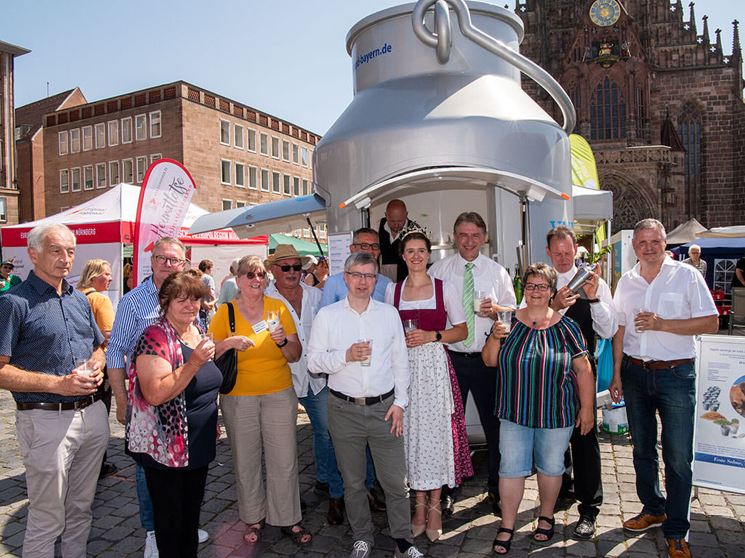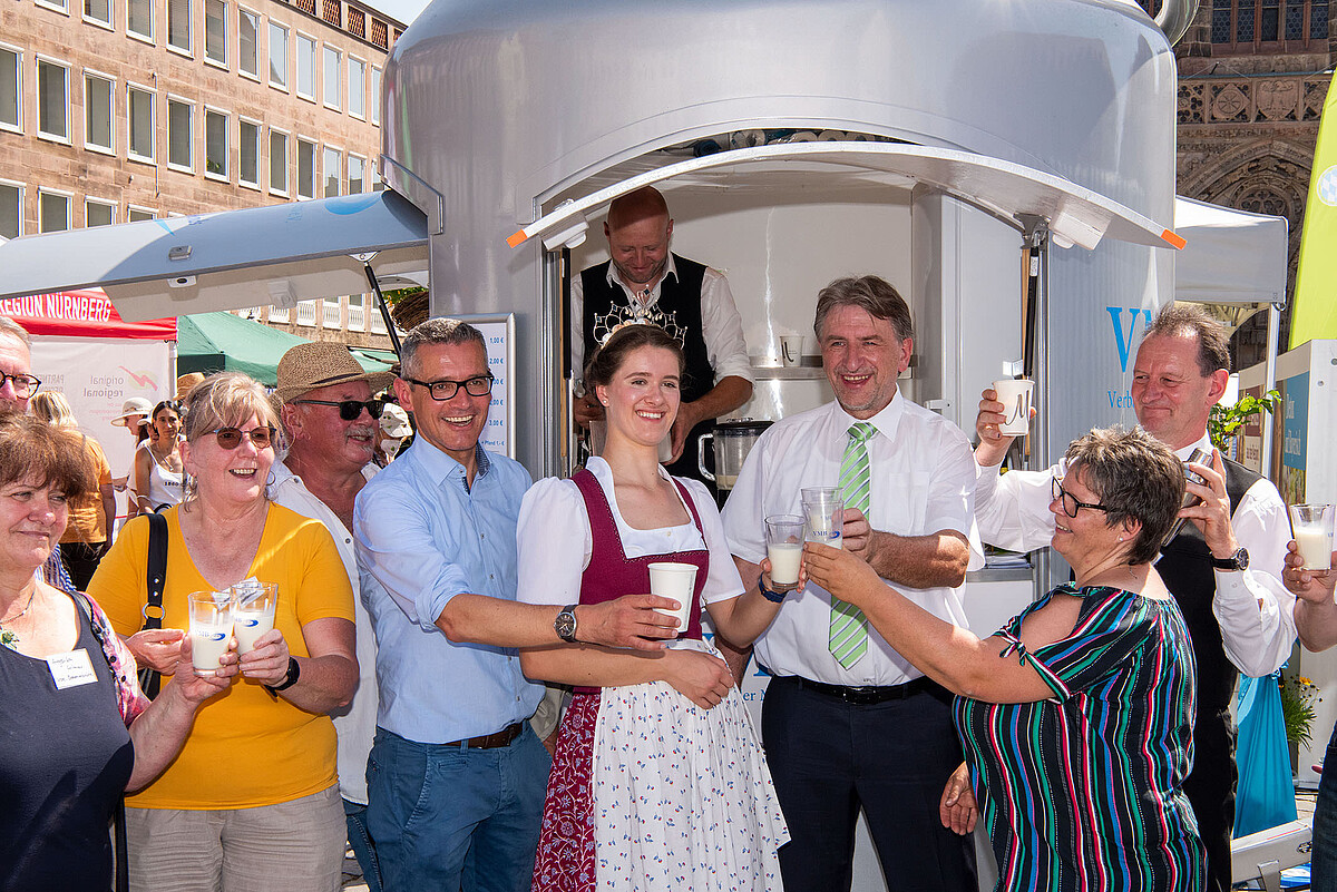 Bild: Milchpräsident Günther Felßner und Bayerische Milchprinzessin Philomena Mögele mit Vertretern aus Mittelfranken, der Stadt Nürnberg und Verbände