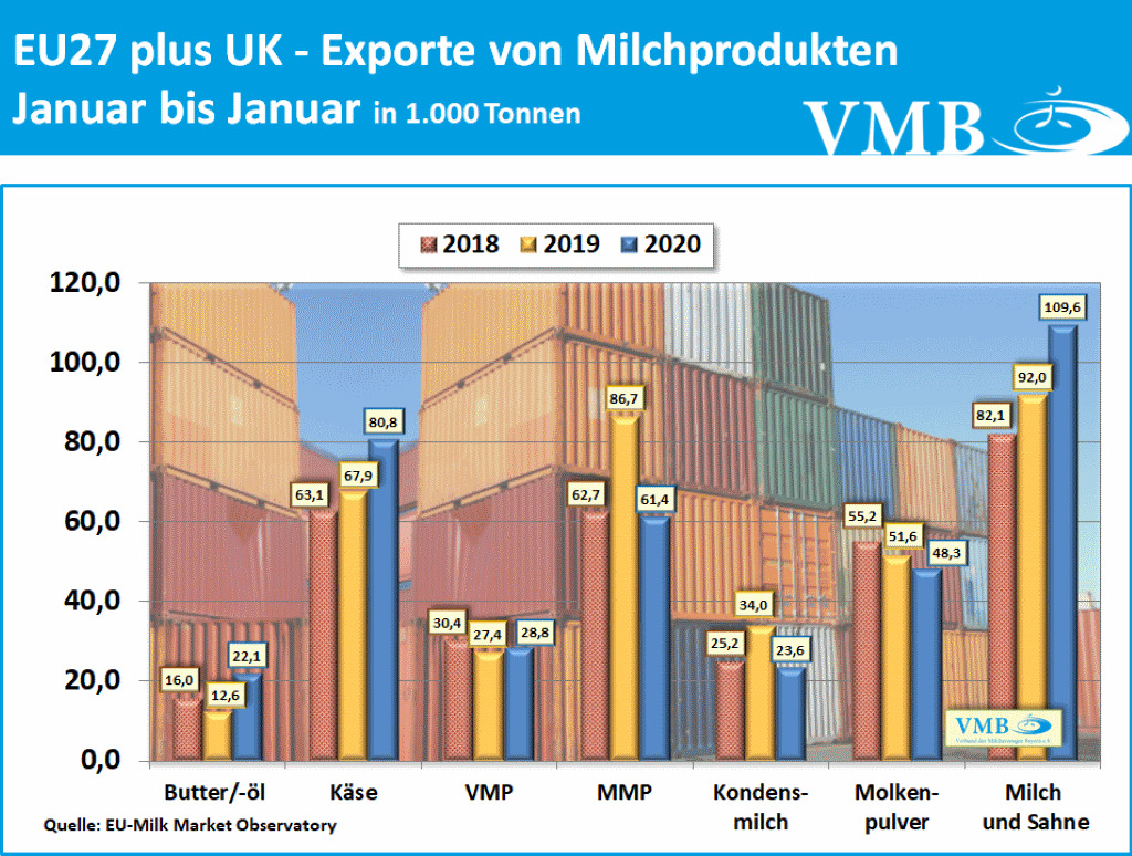So gesehen zeigt die erste Handelsbilanz der Europäischen Union für den Monat Januar 2020, dass der Export von Milchprodukten in die Drittländer eigentlich hervorragend angelaufen ist. Eigentlich!
