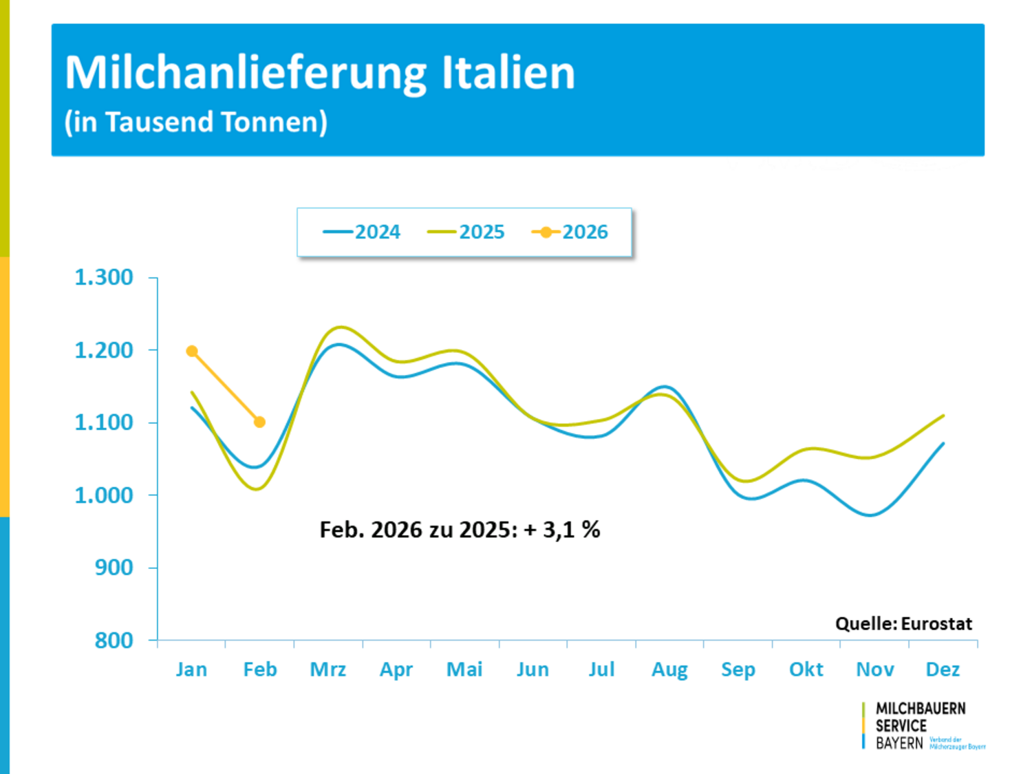 Nutzen Sie die interaktiven Grafiken für Ihre individuelle Analyse hier: https://www.milchbauernservice.de/milchmarkt-daten-und-analysen/eu-milchanlieferung