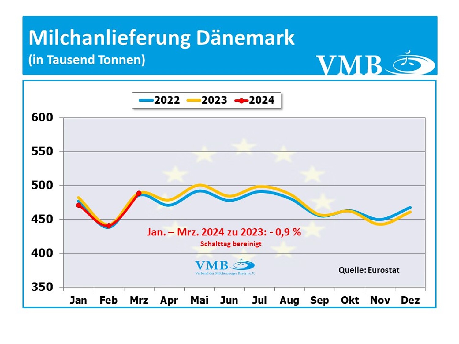 Das Milchaufkommen in der EU-27 legte im Trend des Jahresverlaufs entsprechend im März zu. Im Vergleich zum Vorjahr wurden im März laut Eurostat mit insgesamt 12,95 Milliarden kg Milch 0,5 % mehr Milch angeliefert. Aufsummiert für das I. Quartal haben europäische Milchbauern – Schalttags bereinigt – mit rund 35,9 Milliarden kg Milch ein nahezu identisches Erzeugungsniveau erreicht wie in den ersten drei Monaten des Vorjahres (-0,13 %). Innerhalb der einzelnen Mitgliedstaaten prägte in den ersten drei Monaten dieses Jahres ein uneinheitliches Bild das Anlieferungsverhalten. In Osteuropa war der Trend der expansiven Milchproduktion ungebrochen, während anderenorts allenfalls stabile oder rückläufige Tendenzen ausgewiesen wurden.