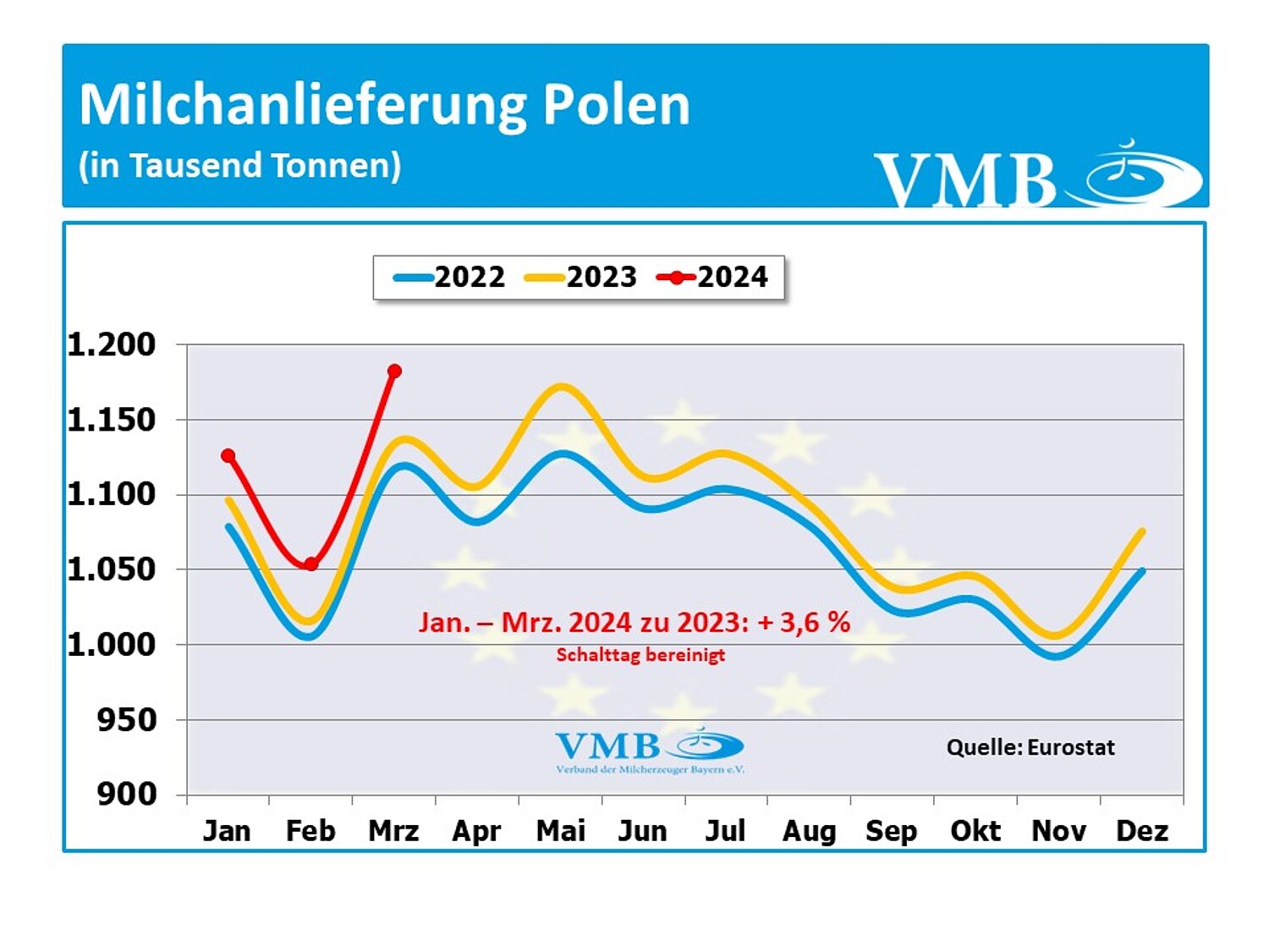 Weniger Milch in Irland und den Niederlanden, steigende Mengen in Polen