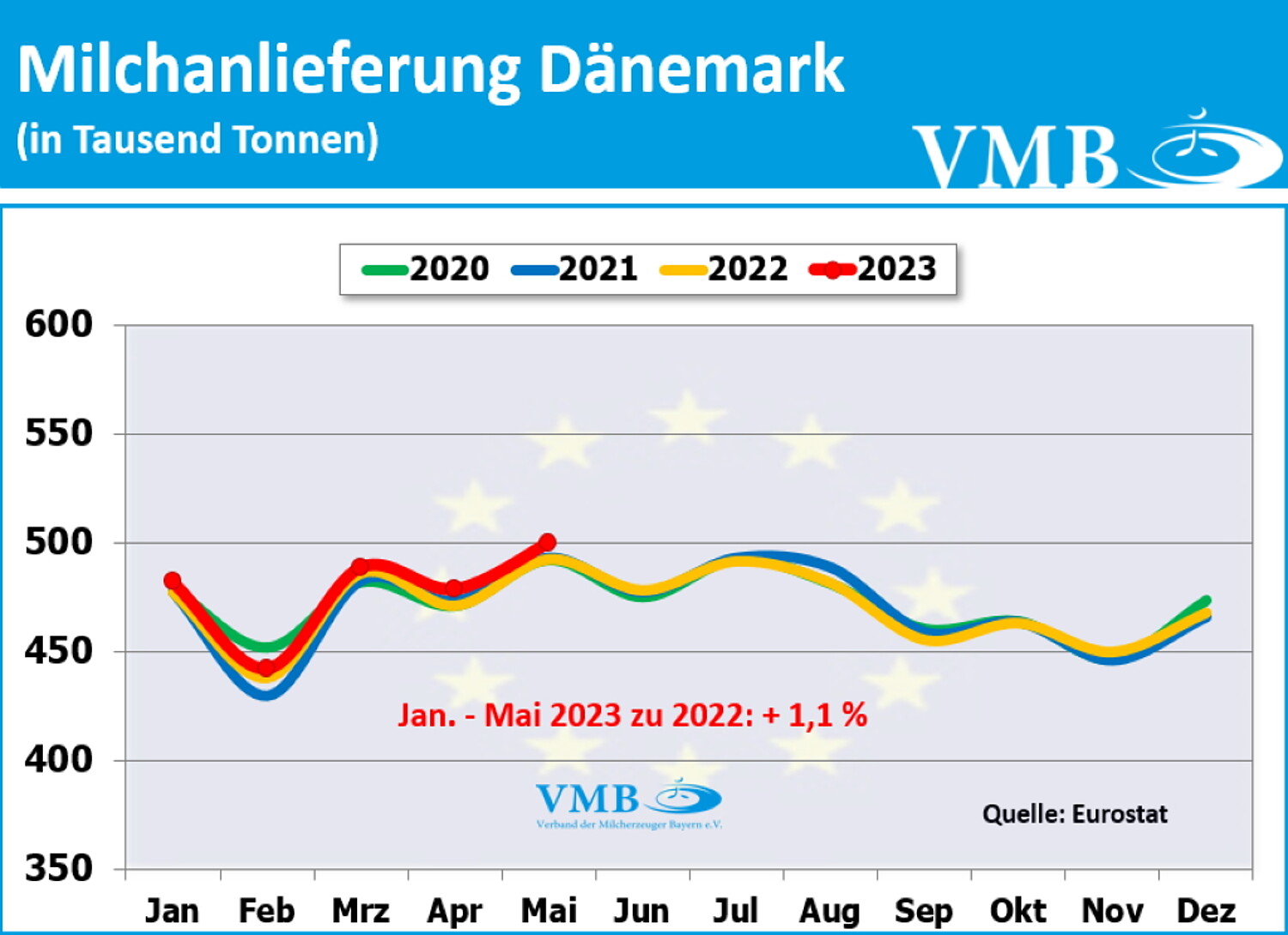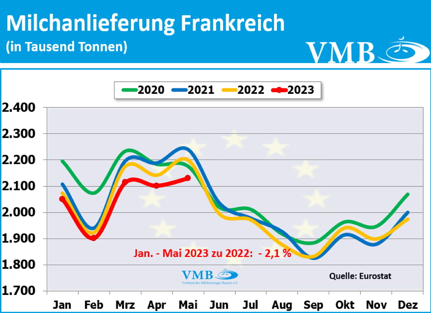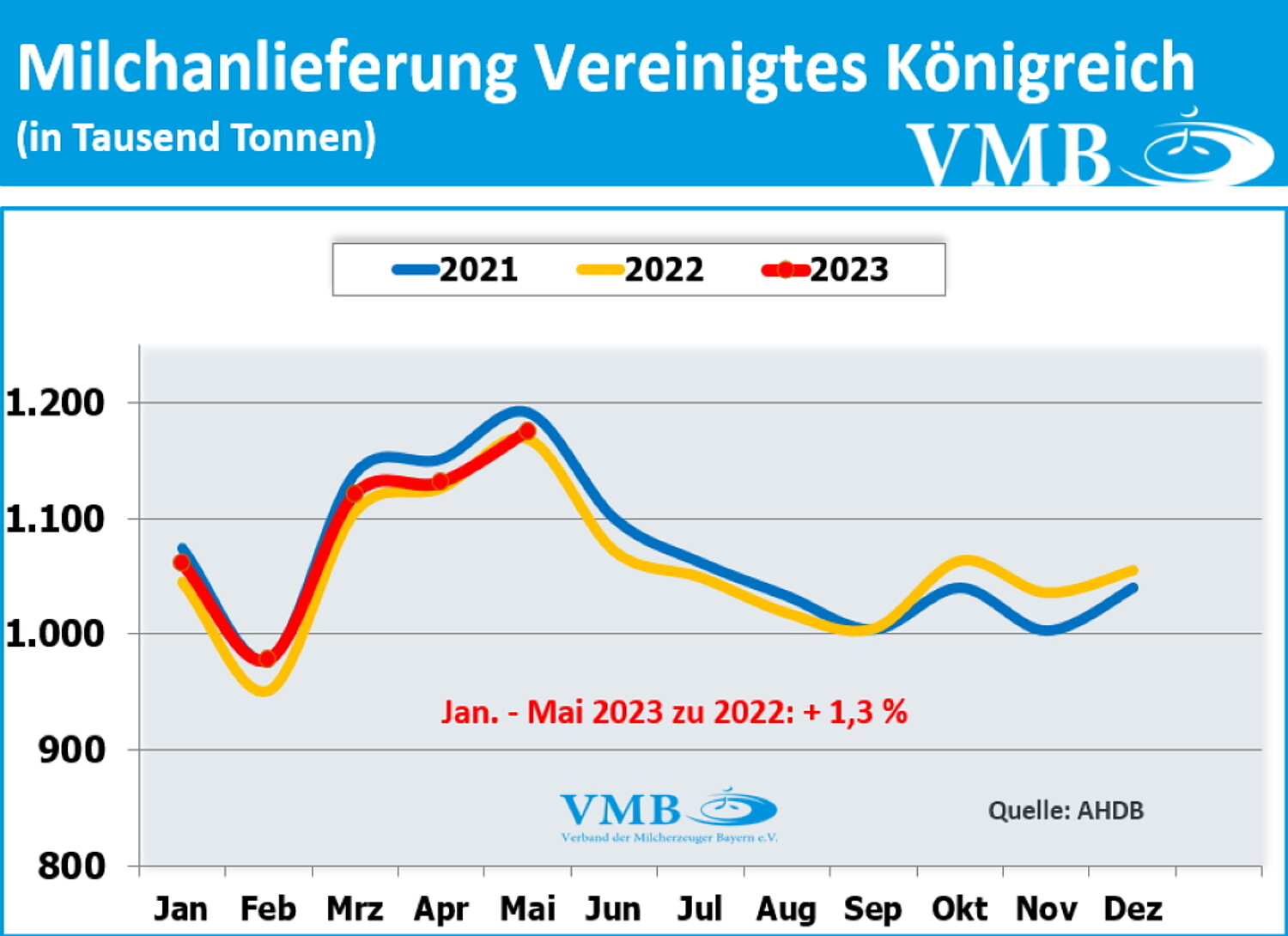 Vom Amt für Statistik der Europäischen Union wurden die Milcherzeugungsmengen der 27 EU-Staaten veröffentlicht. Das Vereinigte Königreich (United Kingdom) wird in der Auswertung extra aufgeführt. Die Daten werden bei Agriculture and Horticulture Development Board (AHDB) publiziert.