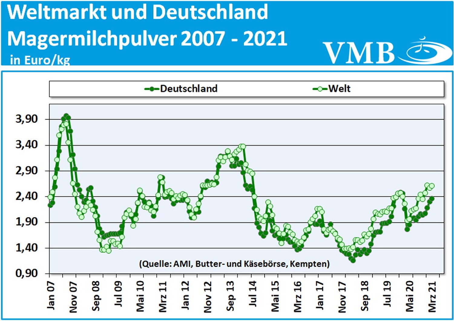 Bei den wichtigsten Milchprodukten konnte Käse (Cheddar) um 1,2 Prozent und Vollmilchpulver um 0,4 Prozent zulegen. Käse wurde bei 4.436 US-Dollar pro Tonne und Vollmilchpulver bei 4.097 US-Dollar pro Tonne verkauft. Magermilchpulver blieb in der Notierung im Handelspreis unverändert bei 3.365 US-Dollar pro Tonne. Die Erlöse bei Milchfett sind etwas gefallen. Wasserfreies Fett (Ghee bzw. Butterschmalz) ging um 3,3 Prozent auf eine Höhe von 6.003 US-Dollar je Tonne und Butter um 0,6 Prozent auf 5.736 US-Dollar je Tonne zurück. In Euro umgerechnet befinden sich derzeit die meisten Verkaufspreise (nach aktuellem Wechselkurs) teilweise über den europäischen Handelspreisen.
