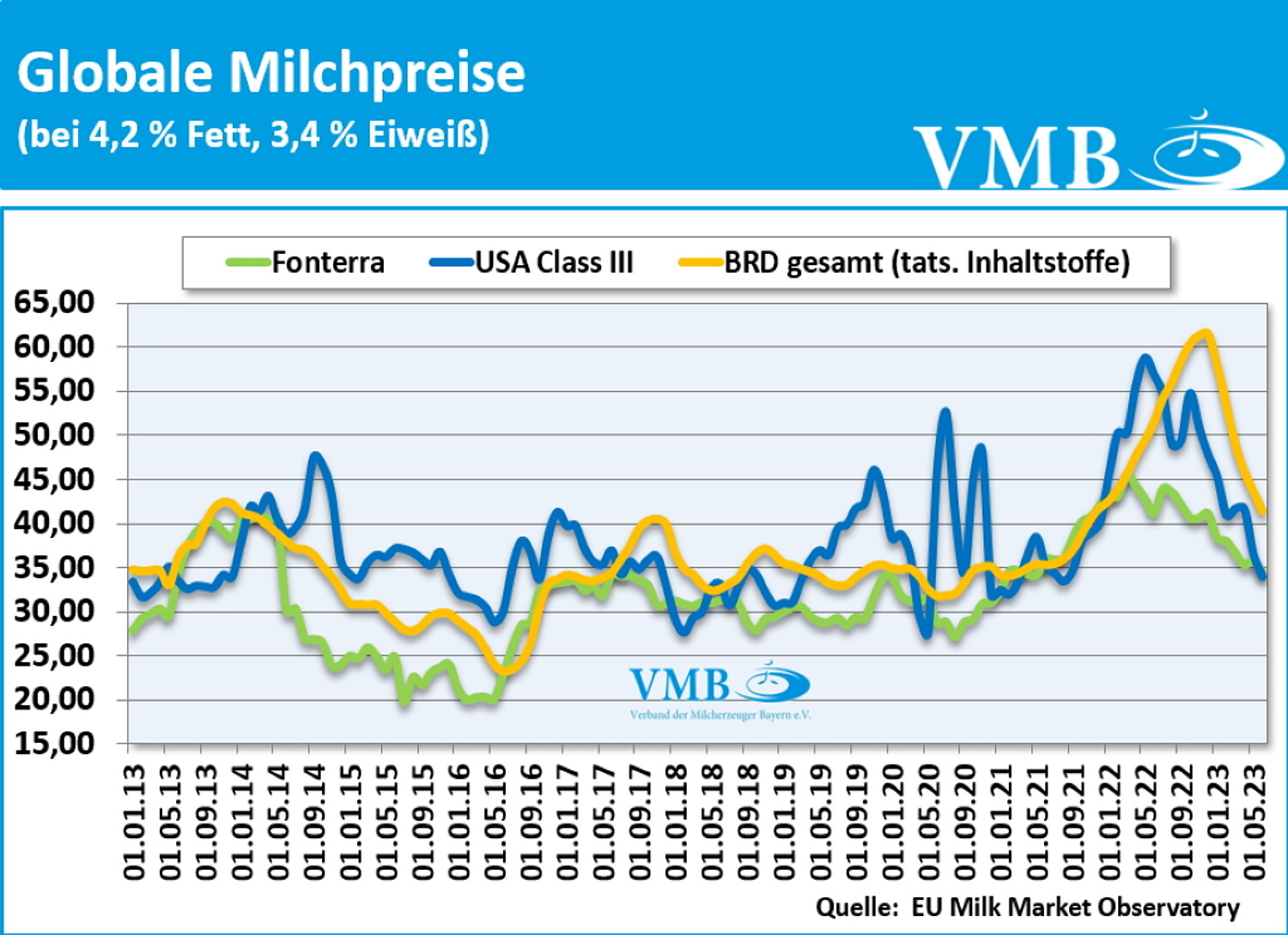Die im vierzehntägigen bzw. dreiwöchigen Rhythmus stattfindende internationale Handelsplattform GDT (Global Dairy Trade) für Milchstandardprodukte veröffentlicht die durchschnittlichen Werte der am Weltmarkt verkauften Milchprodukte des Commodities-Bereichs (verschiedene Milchpulversorten, Chester, sowie diverse Butterprodukte). Beteiligt sind überwiegend größere international handelnde Molkereiunternehmen wie Fonterra (NZMP), Dairy America, Amul, Arla, Eursérum, Murray Goulburn und Polish Dairy.