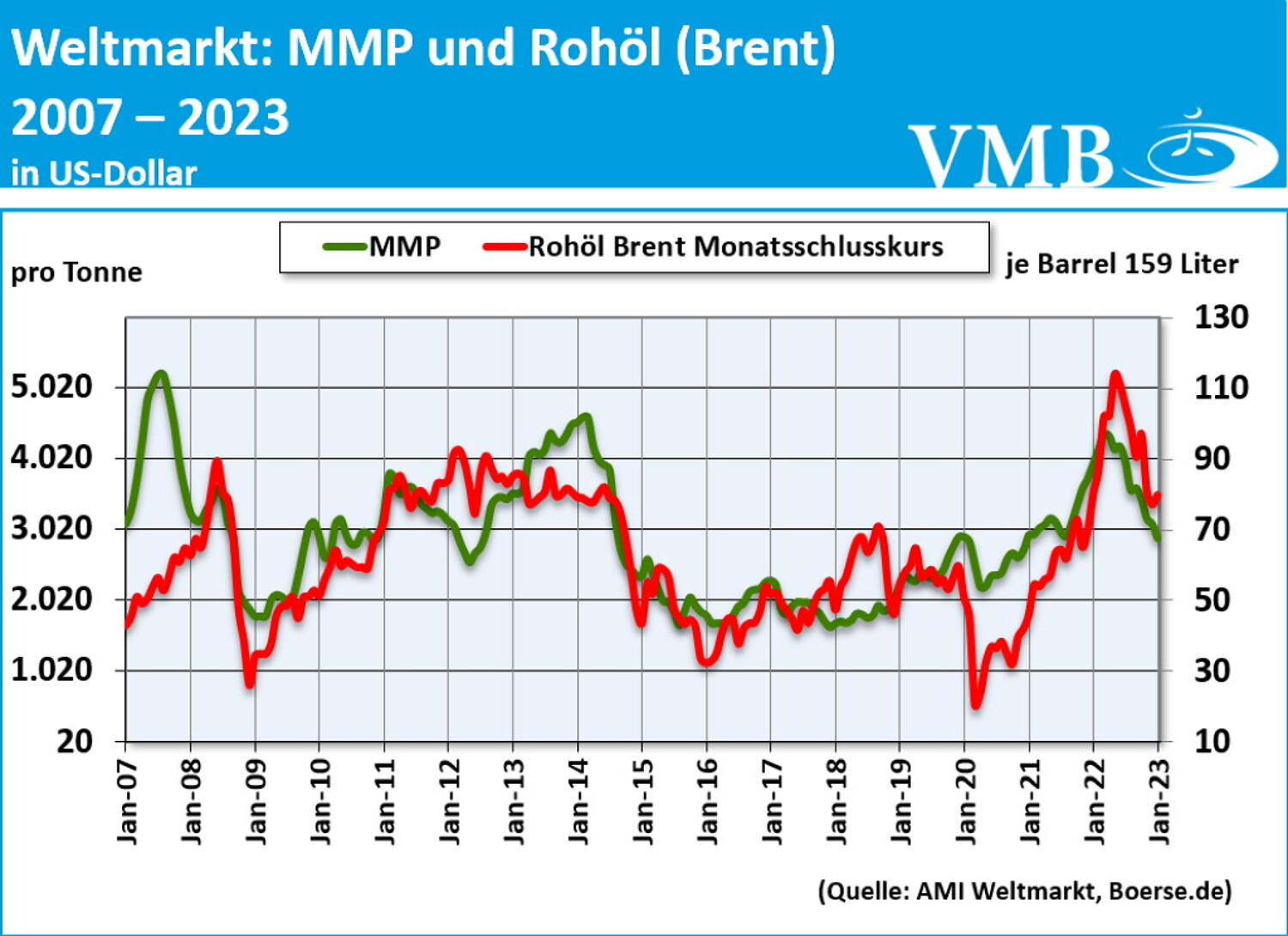 Die letzte Auktion im Februar 2023 hat nochmals unterstrichen, dass die Marktentwicklung für Milcherzeugnisse noch abwartend bzw. immer noch ohne tendenzielle Ausrichtung voran geht. Die letzten Auktionen gehen stetig in kleinen Abständen auf und ab. Nach vorherigen Steigerungen, sind nun wieder negative Ergebnisse aufgetreten. Allerdings geht der durchschnittliche Rückgang nicht in Kombination auf alle Milcherzeugnisse mit niedrigen Verkaufspreisen zurück. Während die Produktpreise für Butter und Käse weiter auf dem Vormarsch sind und dabei das europäische Preisniveau eingenommen haben, schwächelt Milchpulver und wasserfreies Fett. Die Butterpreise stiegen am höchsten um 3,8 Prozent auf 4.922 US-Dollar je Tonne. Gefolgt mit einem Plus von 2,1 Prozent für Cheddar/Chester-Käse. Dieser Verkaufspreis hat mittlerweile wieder die 5.000 US-Dollar-Linie (je Tonne) überschritten. Bei Milchpulver betragen die Differenzen um zwei Prozent. Die Handelspreise liegen bei Vollmilchpulver bei 3.264 US-Dollar je Tonne und bei Magermilchpulver bei 2.796 US-Dollar für die Tonne. Auch hier wurde langsam die Höhe der europäischen Verkaufserlöse erreicht bzw. die hiesige Ware hat sich der internationalen Position angeschlossen Erfreulich kann dennoch die derzeitige Schwankungsbreite als gewissermaßen „Bodensatz“ für den globalen Milchmarkt interpretiert werden.