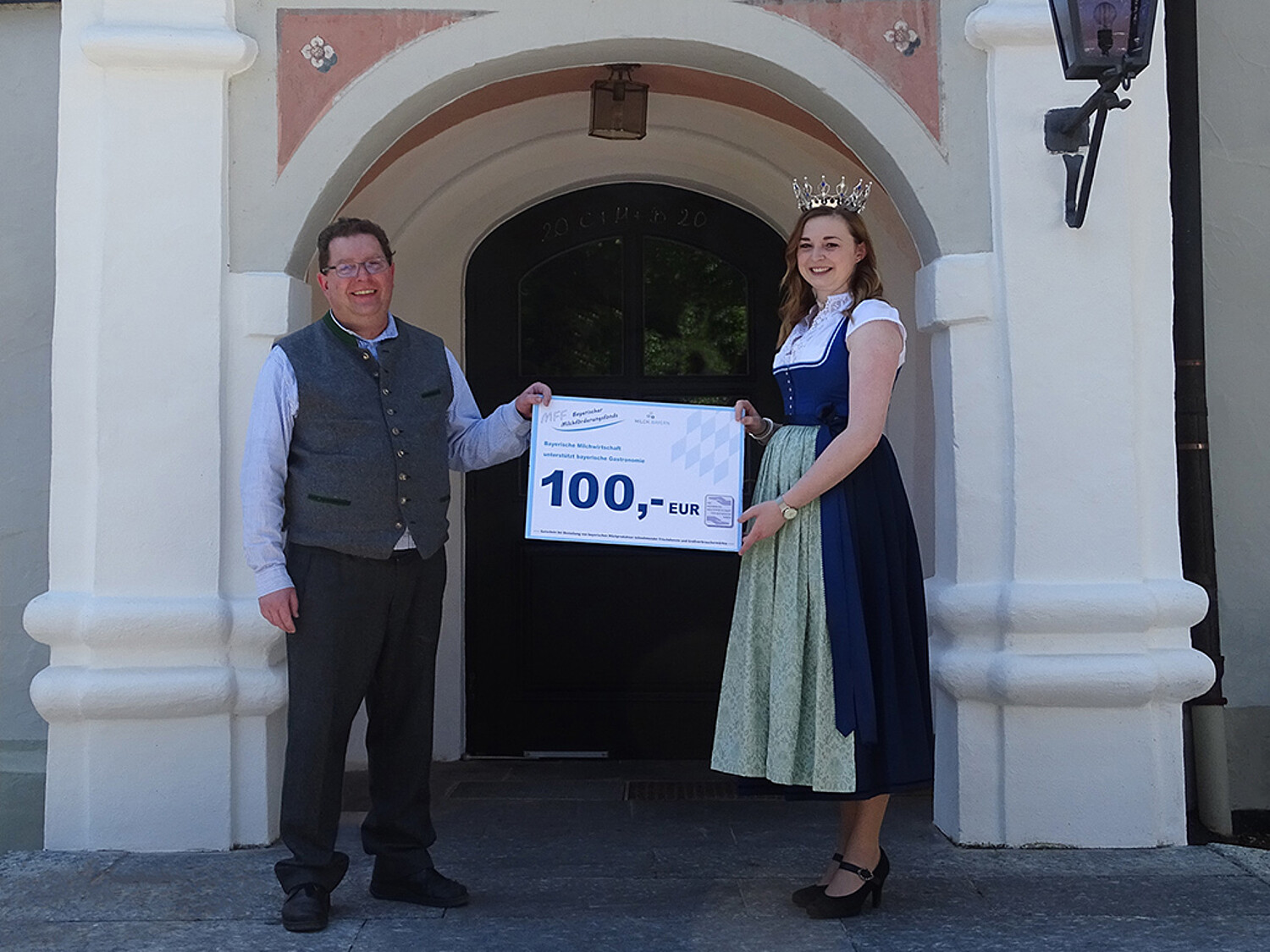 Bild oben: Pünktlich zur Wiedereröffnung der Außengastronomie überreichte Bayerns Milchkönigin Beatrice Scheitz den ersten Gutschein an Ralf Sanktjohanser vom Andechser Klostergasthof.