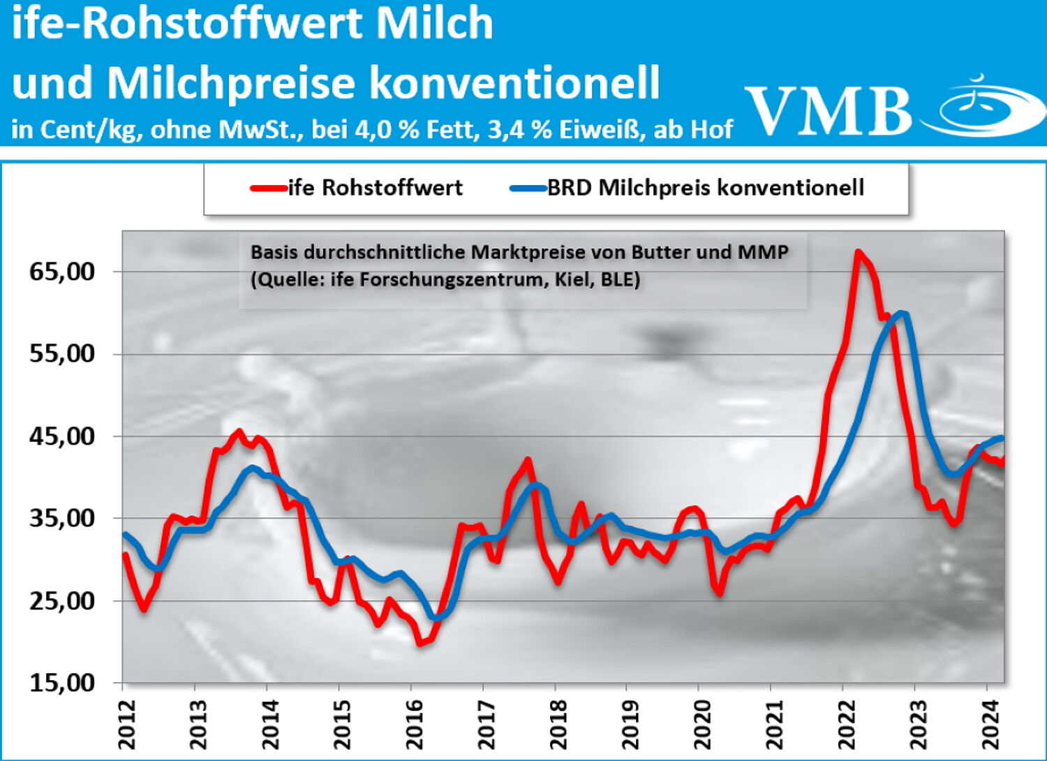 Das Institut für Ernährungswirtschaft, Kiel (ife) berechnet aus den Notierungswerten von Butter und Magermilchpulver (MMP) der Süddeutschen Butter- und Käsebörse, Kempten, den sogenannten Kieler Rohstoffwert (KRW). Dieser Wert entspricht der durchschnittlichen Milchverwertung aus dem Verkauf von Milchfett und Milcheiweiß.