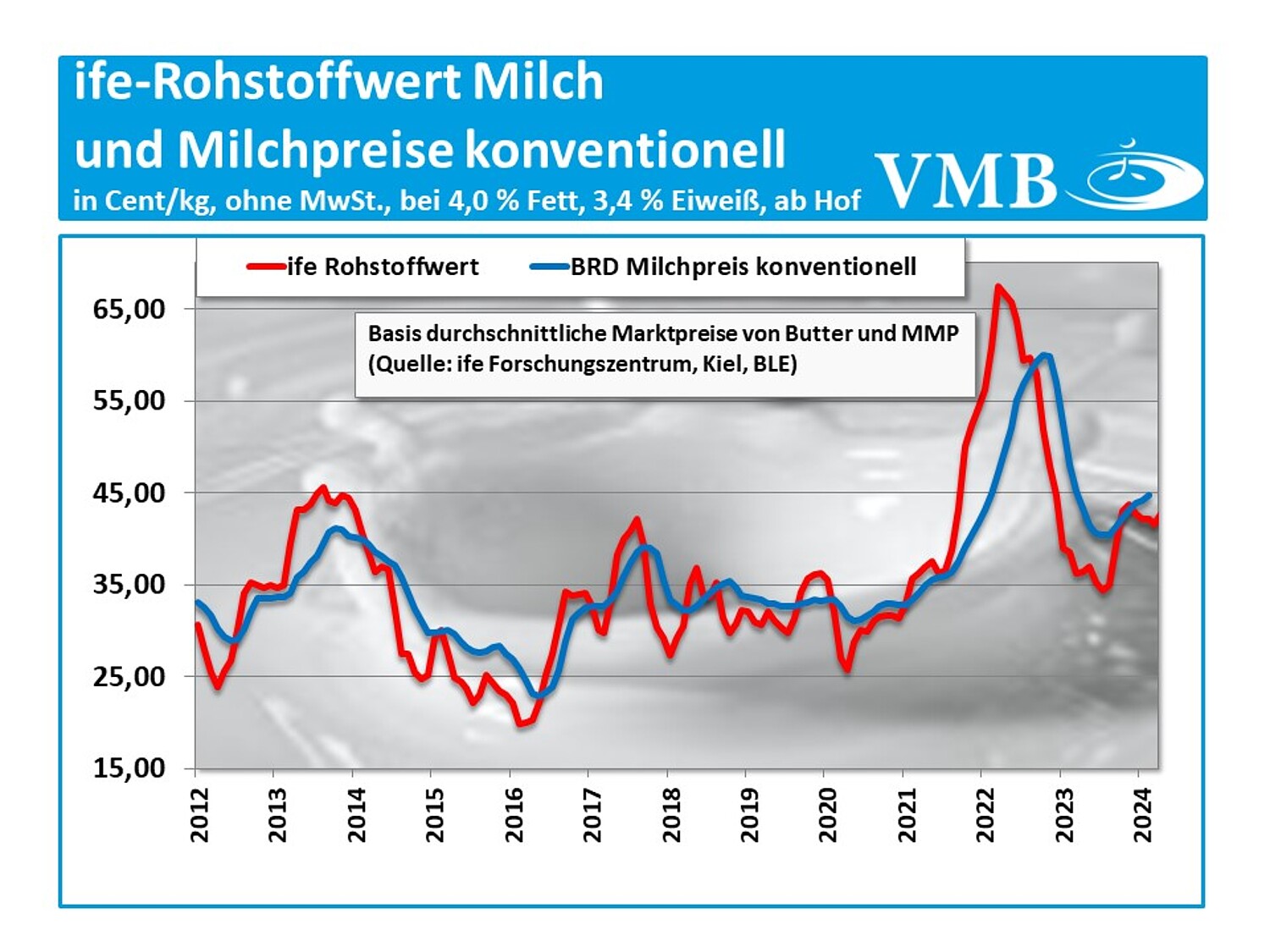 Das Institut für Ernährungswirtschaft, Kiel (ife) berechnet aus den Notierungswerten von Butter und Magermilchpulver (MMP) der Süddeutschen Butter- und Käsebörse, Kempten, den sogenannten Kieler Rohstoffwert (KRW). Dieser Wert entspricht der durchschnittlichen Milchverwertung aus dem Verkauf von Milchfett und Milcheiweiß.
