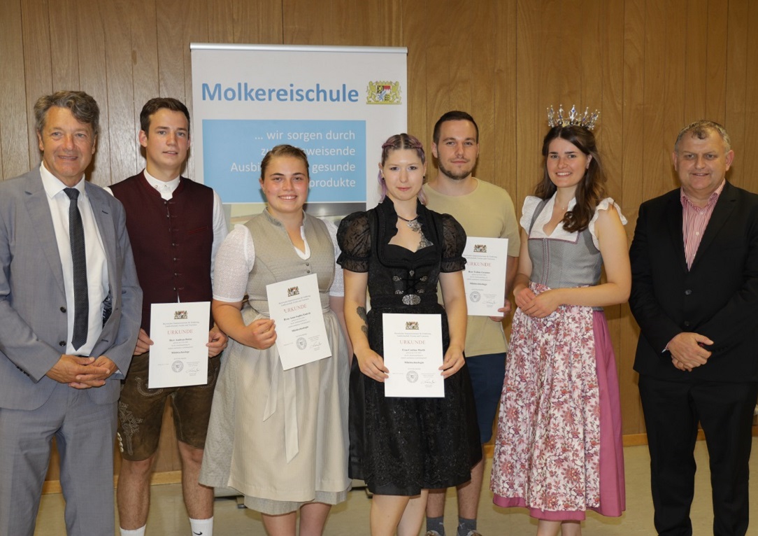 Nach bestandener Abschlussprüfung fand für 29 Milchtechnologinnen und Milchtechnologen aus ganz Bayern die Verabschiedung am Lehr-, Versuchs- und Fachzentrum für Molkereiwirtschaft (LVFZ) Kempten mit Zeugnisübergabe und Urkunden statt. Die Bayerische Milchkönigin Elisabeth Heimerl hob in ihrem Grußwort den hohen Stellenwert der Milchwirtschaft für Bayern und insbesondere für das Allgäu hervor und beglückwünschten die frisch gebackenen Milchtechnologinnen und Milchtechnologen zu ihrem Erfolg am einzigartigen Ausbildungsstandort Kempten.