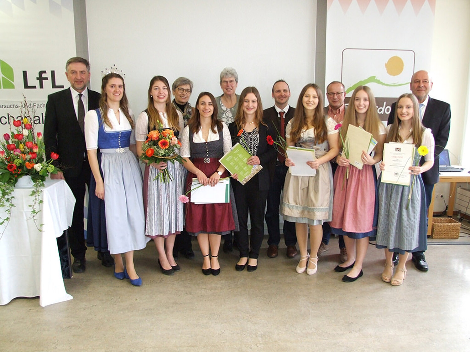 19 Milchwirtschaftliche Laborantinnen und Laboranten wurden am 24.März in Triesdorf an der Bayerischen Landesanstalt für Landwirtschaft (LfL), Lehr-, Versuchs- und Fachzentrum für Milchanalytik (LVFZ) feierlich verabschiedet. Die Bayerische Milchprinzessin Philomena Mögele beglückwünschte alle zu ihren erfolgreichen Abschlüssen. Insbesondere gratulierte sie der Jahrgangsbesten Anna Grundler (Meggle, Wasserburg), Vera-Hedwig Zimmermann (Würzburger Milchwerke) als Zweitbeste und den vier drittbesten Eva-Maria Vordermayer (Bergader Privatkäserei, Waging), Elisabeth Bachmaier (Hofmeister, Moosburg), Simone Kick (Naabtaler Milchwerke, Schwarzenfeld) und Michelle Pögl (Milchwerke Berchtesgadener Land, Piding) zu ihren herausragenden Leistungen. In ihrem Grußwort betonte sie die Bedeutung dieses Ausbildungsberufes bei der Qualitätskontrolle und Qualitätssicherung von Lebensmitteln nicht nur in milchwirtschaftlichen Unternehmen sondern auch in der gesamten Lebensmittelbranche.