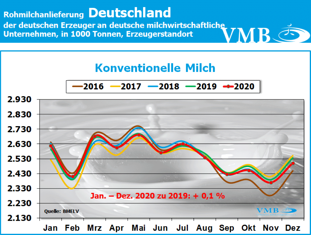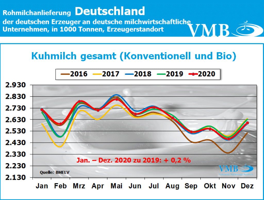 Milchanlieferungen Deutschland Dezember 2020 - Jahresbilanz