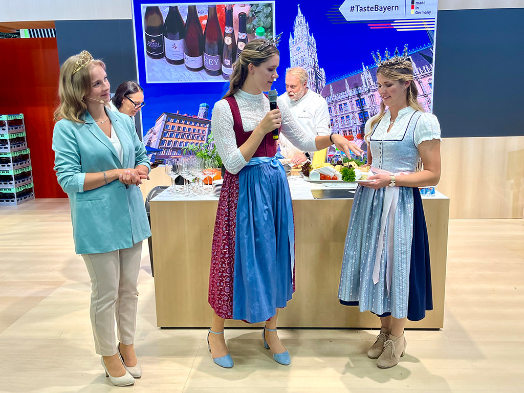 Bild oben: Foodpairing "Käse und Wein" - Die Bayerischen Milchhoheiten zusammen mit der Deutschen Weinprinzessin Juliane Schäfer