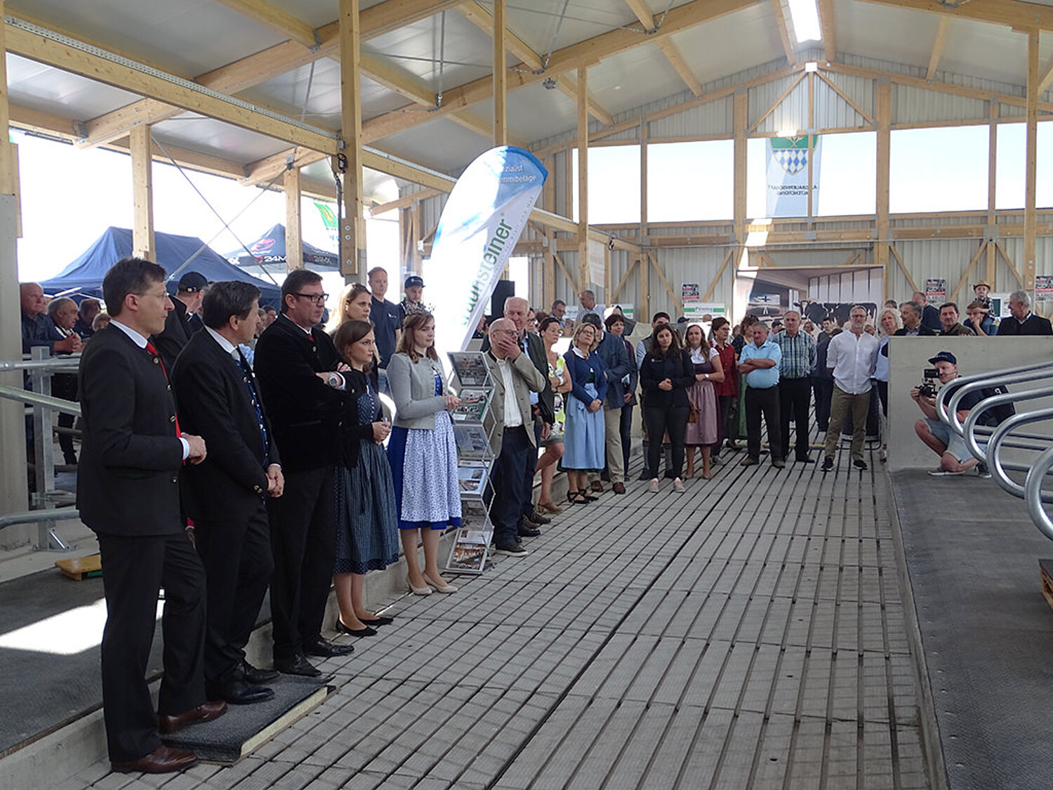 Die Bayerische Milchkönigin Beatrice Scheitz war neben Erdings Oberbürgermeister Max Gotz, CSU-Landtagsabgeordneter Ulrike Scharf sowie Landrat Martin Bayerstorfer und weiteren Personen aus Politik und Gesellschaft zu Gast bei Familie Brielmair, die stolz ihren neuen modernen Milchvieh-Laufstall vorstellte. Der neue Vorzeigestall in Graß bei Erding bietet Platz für 138 Milchkühe, die alle Annehmlichkeiten eines Wohlfühlstalles wie frische Luft, vollgummierte Liegeboxen, optimale Lichtsteuerung und beste Hygienebedingungen genießen werden. Sämtliche Arbeiten wurden von Firmen aus der Region ausgeführt. Handwerkskammerpräsident Franz Xaver Peteranderl war „schwer beeindruckt, was die Landwirtschaft hier auf die Beine gestellt hat, um die hochwertige Versorgung der Bevölkerung zu gewährleisten.“ Das innovative Stallbauprojekt der Familie Brielmair zeigt, wie hier Landwirtschaft und Handwerk Hand in Hand gehen und die Zukunft der Region sichern helfen.