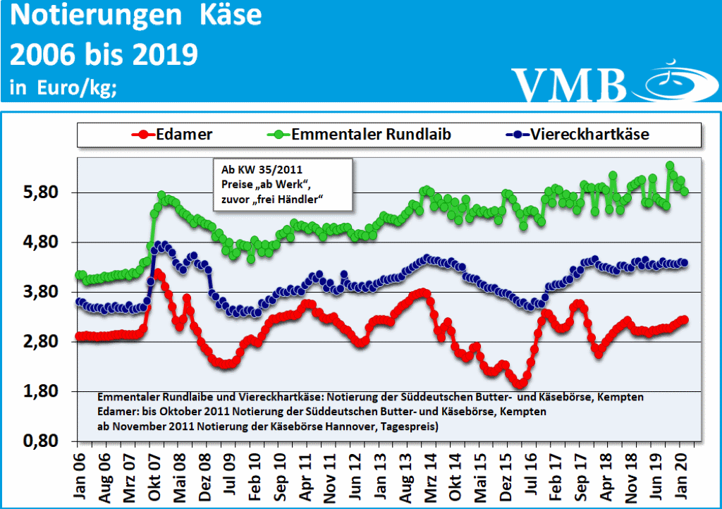 Die Bedarfsmengen an Schnittkäse bleiben in Deutschland weiterhin auf einem hohen Niveau. In Anbetracht der Fastenzeit kaufen die Verbraucher noch mehr Käseprodukte ein. Die Absätze erreichen deshalb bei Edamer und Gouda wie auch vor allem bei den Schnittkäse-Spezialitäten ein hohes Niveau. In Erwartung dieses Einkaufstrends sind die Produktionsmengen dem sich abzeichnenden Bedarf angepasst worden und erweisen sich nun gegenüber der Nachfrage als ausgeglichen. Dementsprechend befinden sich die Preise auf einer festen Basis. Die Exportaktivitäten sind bislang noch auf gutem Stand. Allerdings sind speziell für den Mittelmeerraum die möglichen Absatzmengen noch sehr spekulativ einzuschätzen. Noch ist nicht abzusehen, welche regionalen Sperrgebiete wegen des Coronavirus in Norditalien oder anderswo eingerichtet werden und ob zur Osterzeit auch ausreichend Urlauber Italien oder andere Mittelmeerländer besuchen.