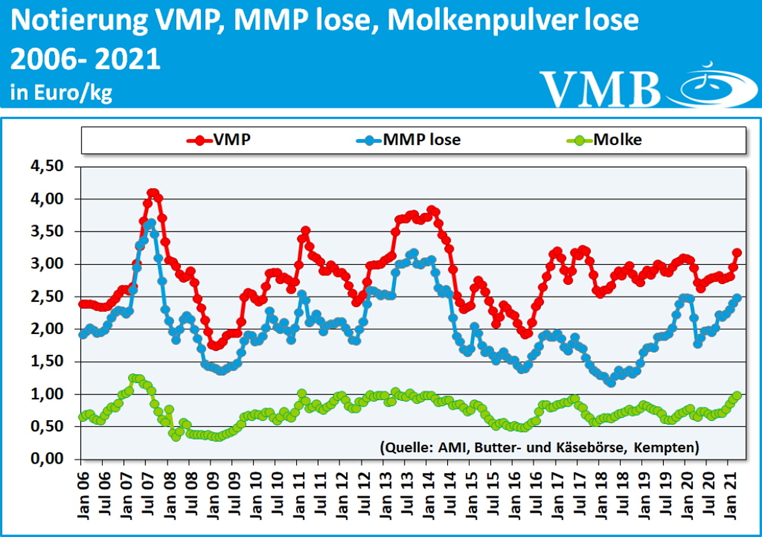 Die Schnittkäsevermarktung befindet sich, wie in den vergangenen Wochen, weiter auf einem sehr hohen Stand. Obwohl die Osterfeiertage zu Ende sind, hat sich die gute Absatzentwicklung von Schnittkäse ohne Unterbrechung fortsetzen können. Deshalb werden in diesem Bereich Edamer, Gouda und auch die Schnittkäsespezialitäten im Inland, vor allem vom Lebensmitteleinzelhandel, stärker abgerufen. Ebenso konnte der Außenhandel weiterhin erfreuliche Verkaufszahlen melden. Das Preisgefüge ist aufgrund der guten Verkaufsentwicklung in Bewegung, so dass bei neuen Kontrakten gegenüber der abnehmenden Hand Preiserhöhungen umgesetzt werden können.