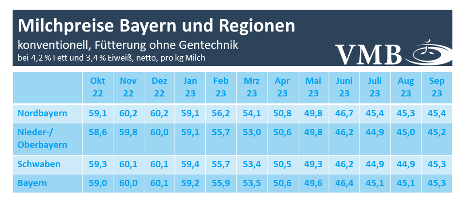 Milchpreise Bayern nach Regionen: Zur größeren Ansicht auf die Grafik klicken.