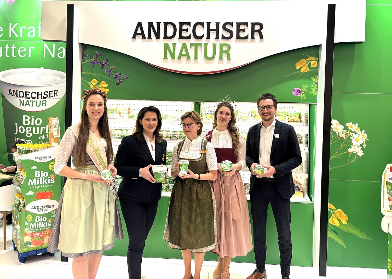 Vom 13.-16.02.2024 fand die Biofach - die Weltleitmesse rund um das Thema Bio-Lebensmittel - wieder auf dem Nürnberger Messegelände statt. Laut Angaben der Nürnberg-Messe präsentierten 2.550 internationale Aussteller aus 94 Ländern ihr umfangreiches Produktrepertoir entlang der gesamten Wertschöpfungskette. Der Ökolandbau in Bayern befindet sich weiterhin auf einem verhaltenen Wachstumskurs. Nach vorläufigen Zahlen ist die Ökofläche in Bayern im vergangenen Jahr um weitere 4.000 Hektar gewachsen. Die Anzahl der Ökobetriebe in Bayern liegt nun bei rund 12.000, die insgesamt nahezu 420.000 Hektar Fläche nach den Vorgaben des Ökolandbaus bewirtschaften. Damit verfügt Bayern bundesweit weiterhin über die mit Abstand größte Ökofläche und die meisten Ökobetriebe und rund jeder dritte deutsche Ökobetrieb wirtschaftet im Freistaat. Die Bayerische Milchprinzessin Philomena Mögele nutzte auf ihrem Rundgang die Gelegenheit, sich über die Produktneuheiten der bayerischen Molkereien (Molkerei Berchtesgadener Land, Andechser Molkerei Scheitz; der Champignon-Hofmeister Unternehmensgruppe mit der Produklinie Alpavit, der Käse-Rebellen, der Weißenhorner Molkerei und Gabler-Saliter,) zu informieren.