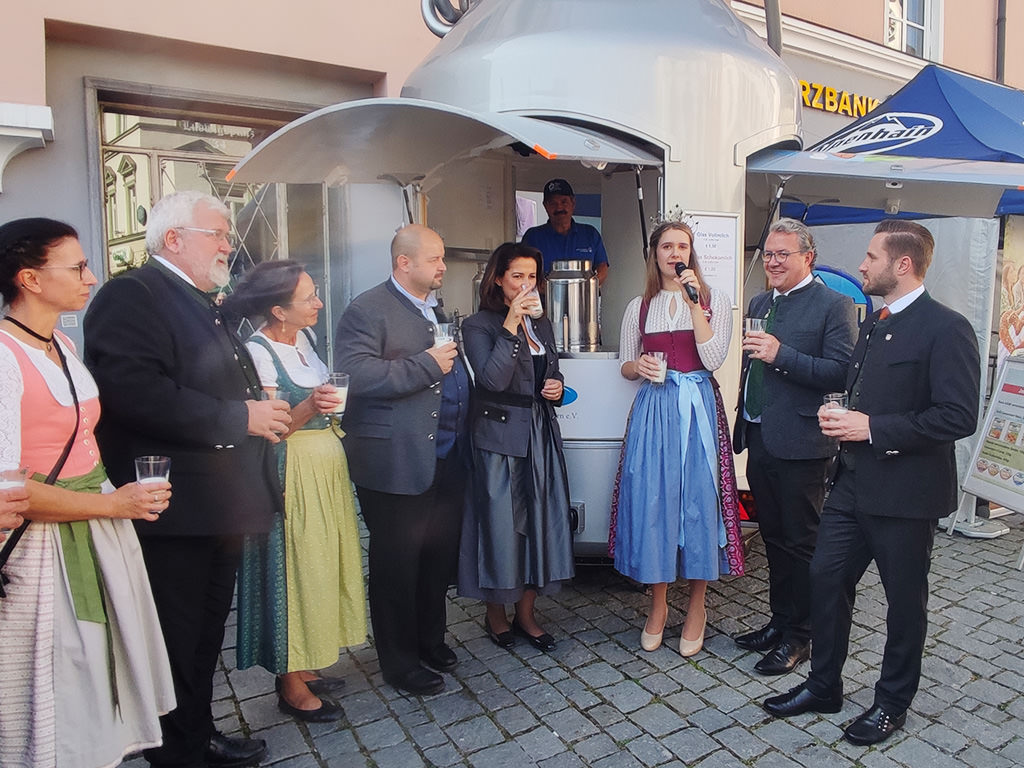 Am 24. September fand bereits zum 26. Mal die Rosenheimer Schmankerlstraße statt, und es zeigte sich wieder, dass regionale Erzeugnisse beim Verbraucher einen großen Stellenwert haben. Tausende Besucher nutzten die Gelegenheit, auf dem Ludwigsplatz Produkte zu probieren und viel Wissenswertes aus dem Bereich der Landwirtschaft zu erfahren. Der VMB war mit der großen Milchkanne vor Ort, und die Bayerische Milchprinzessin Philomena Mögele informierte über die Milcherzeugung in Bayern. Bereits zu Beginn standen Kindergartengruppen und Schulklassen, insgesamt über 400 Buben und Mädchen, Schlange, um aus der Hand der Milchprinzessin ein Glas Milch zur Stärkung zu erhalten. Bei der Eröffnung betonte der Rosenheimer Kreisobmann und stellvertretender Vorstandsvorsitzender des VMB Josef Andres die Bedeutung der Land- und Milchwirtschaft für den Landkreis Rosenheim und wies auf die Bedeutung der regionalen Erzeugnisse, gerade in diesen Zeiten, hin. Der Stellenwert der Schmankerlstraße zeigte sich auch durch den Besuch der Bayerischen Landwirtschaftsministerin Michaela Kaniber. Sie nutzte ebenfalls die Gelegenheit für einen Rundgang über die Marktstände. Bei ihrem Grußwort wies sie darauf hin, dass die Schmankerlstraße eine ideale Gelegenheit zum Gespräch zwischen Verbraucher und Landwirten darstellt.