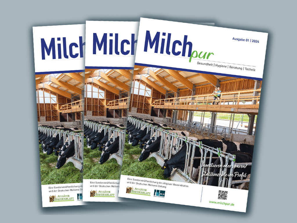 Die Ausgabe 01/24 der Milchpur ist erschienen: Themenbereiche wie Herden- und Haltungsmanagement, Aspekte aus den Bereichen Tierwohl und Tiergesundheit, Stallbau, Fütterung, aber auch Beiträge zu Technik und Grünland runden das Magazin für den professionellen Milcherzeuger ab. Hier gehts zum ePaper.