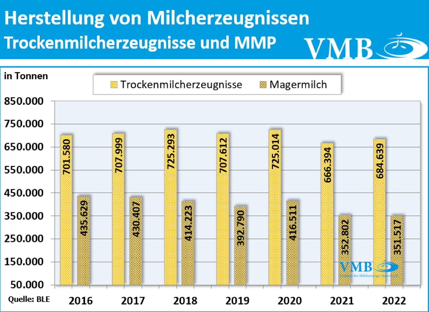 In den letzten Jahren hat es in Deutschland teilweise stetige Änderungen der Verbraucher hinsichtlich ihrer Verzehrgewohnheiten bei Milcherzeugnissen gegeben. Entsprechend haben sich von Seiten der Molkereien auch Verschiebungen der Produktionsausrichtungen mit gewisser Umschichtungen ergeben. Markante Veränderungen haben sich seit mehreren Jahren im Verbrauch bei verschiedenen Käsesorten, Butter oder bei Frischmilcherzeugnissen ergeben. Gleichfalls hat eine nachlassende Milcherzeugung die Verarbeitung bei einigen Milchprodukten etwas selektieren lassen. Seit der Coronapandemie wurde dieser Trend unterbrochen, da die Konsumenten „liebgewonnene“ Verzehrgewohnheiten nicht mehr fortsetzten konnten (z. B. Außerhausverzehr) oder der Warentransfer wurde damals international zeitweise unterbunden. Seit dem letzten Jahr mit Beginn des Ukrainekrieges und der Energiekrise, wird der Milchmarkt durch eine verhaltene Kaufbereitschaft der Bevölkerung flankiert.