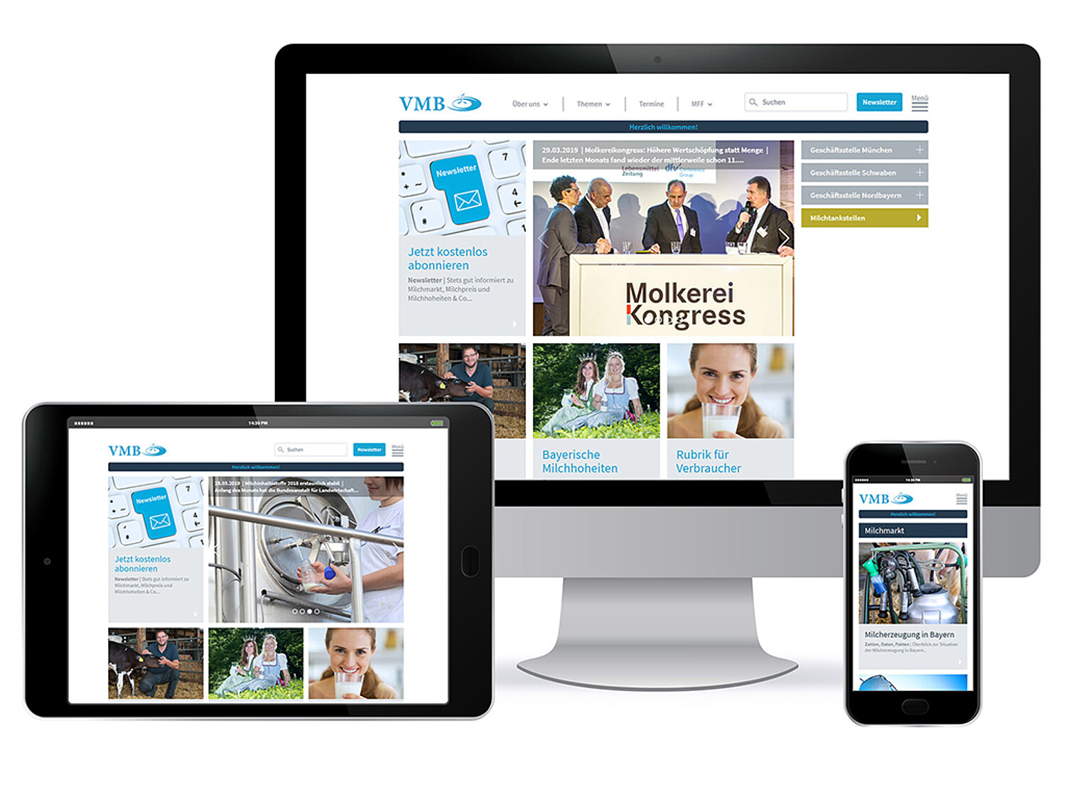 Seit 01.04.2019 hat der Verband der Milcherzeuger Bayern e.V. (VMB) einen neuen Internetauftritt. Die alte Webseite war nach 11 Jahren etwas in die Jahre gekommen und für mobile Endgeräte nicht geeignet. Die bereits bekannten Inhalte rund um die Marktarbeit Milch, Qualitätssicherung und Nachhaltigkeit wurden um neue Themen ergänzt – beispielsweise um das große Thema Tierwohl sowie die Milchhoheiten, Verbraucherschulungen und das Milchautomatennetz in Bayern.