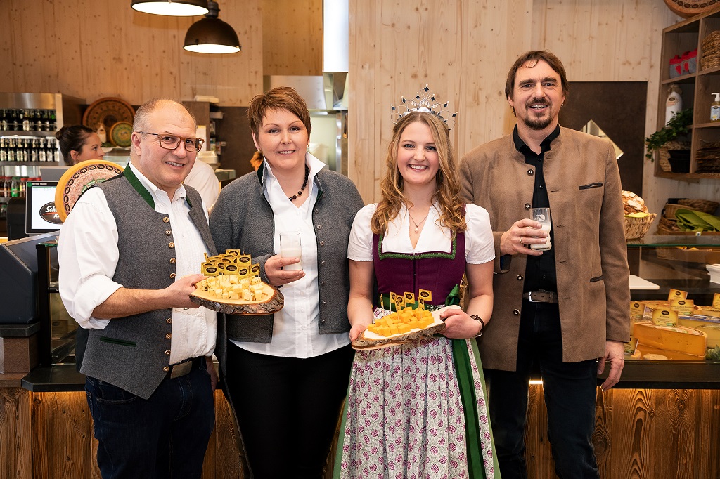 Am letzten Januar-Tag eröffnete Firmeninhaber Josef Krönauer eine neue Almstube im Beisein der Bayerischen Milchprinzessin Miriam Weiß und Bürgermeister Rainer Magenreuter in der Max-Wild-Arena in Isny. Besucher können sich ab sofort bei einem Einkehrschwung mit Käse und einer zünftigen Brotzeit für den Tag stärken. Milchprinzessin Miriam Weiß freute sich, dass sogar ihre heißgeliebten Allgäuer Käsespätzle und heiße Schokolade angeboten werden. Mit zahlreichen Gästen kam sie anschließend bei Käse und einem Glas Heumilch rasch ins Gespräch