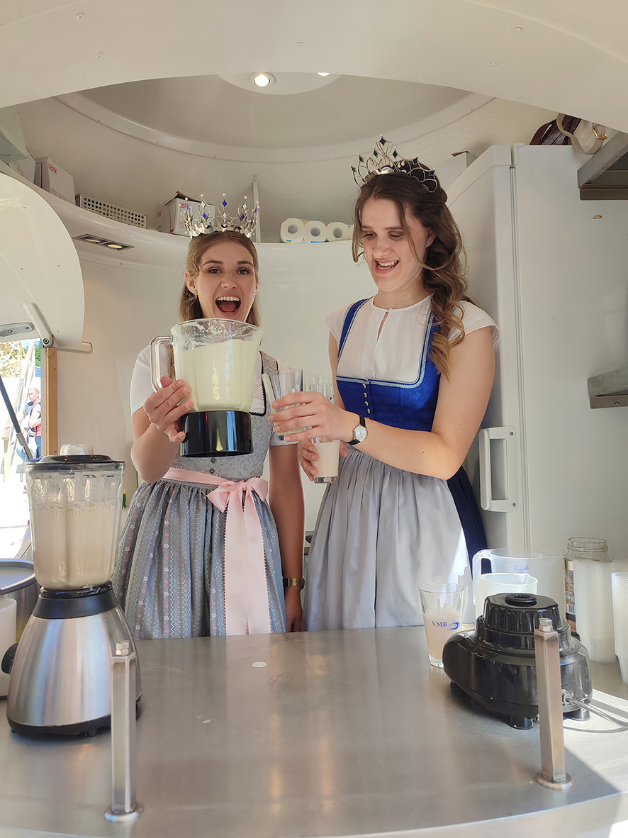 Überregionales Interesse| Pressevertreter begleiteten DAS Milch-Event des Jahres über den Tag hinweg und entlockten den beiden Milchbotschafterinnen einige „Geheimnisse“: Veronika verriet, dass bei ihnen immer die am Morgen frisch gemolkene Milch bereit steht - für Müsli, Milchkaffee oder auch den geliebten Erdbeershake. Und Philomena nutzt die Milch ganz viel zum Kochen.