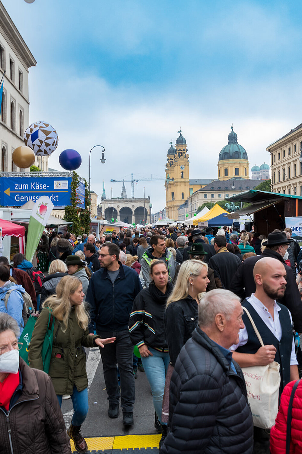 Auf dem Odeonsplatz und in der Ludwigstraße boten mehr als 90 Direktvermarkter aus ganz Bayern ihr vielfältiges Sortiment an selbst erzeugten Produkten an. Die Standbetreiber auf der Bauernmarktmeile München lockten mit regionalen Delikatessen: Ochsenschmankerl, Fisch- Lamm-, Strauß- und Wildspezialitäten. Dazu die Vielfalt regionaler Obst- und Gemüsesorten, eine Vielzahl an Kartoffelsorten, Milchprodukten und Käsespezialitäten, Brot Backwaren und feine Kuchen. Neben den kulinarischen Genüssen bot die Bauernmarktmeile auch Nützliches und Dekoratives für daheim wie Alpaka-Wolle und Alpaka-Betten, handbedruckte Leinenartikel, gedrechselte Holzwaren und Trockenblumen-, Getreide und Hopfenkränze.