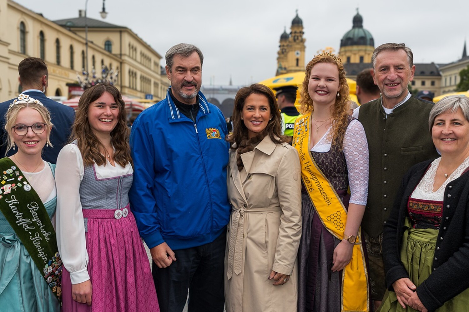Am vergangenen Sonntag herrschte zur Bauernmarktmeile in der Münchner Innenstadt reges Treiben bei schönem Herbstwetter Über 120 Direktvermarkter präsentierten auf dem Odeonsplatz, der Ludwig- und Galeriestraße die ganze Vielfalt bayerischer Landwirtschaft – von frischem Brot über Milch und Käse bis hin zu Honig, regionalen Obst- und Gemüsesorten und Hochprozentigem. Neben den kulinarischen Genüssen bot die Bauernmarktmeile auch Nützliches und Dekoratives für daheim wie Alpaka-Wolle, handbedruckte Leinenartikel, gedrechselte Holzwaren und Hopfenkränze. Eröffnet wurde die Veranstaltung gemeinsam von Ministerpräsident Dr. Markus Söder, Landwirtschaftsministerin Michaela Kaniber, der stellvertretenden Landesbäuerin Christiane Ade und Bauernverbandspräsident Günther Felßner. Mit dabei war auch der VMB mit seiner überdimensionalen Milchkanne. So konnten die Gäste einen der tollen Milchcocktails probieren, sich über die bayerische Milchwirtschaft informieren und mit der Bayerischen Milchkönigin Elisabeth Heimerl ins Gespräch kommen