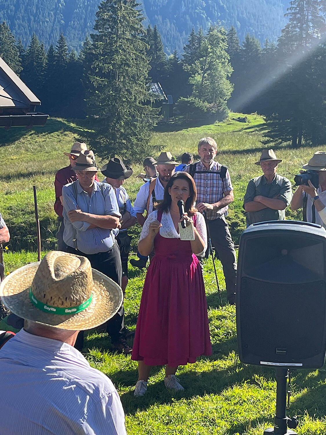 Ein Thema, welches den Almbauern Sorge bereitet, ist die zunehmende Verbreitung des Wolfes. Deshalb kam Söders Statement bei den Almbauern besonders gut an: "Der Wolf gehört hier nicht her!" Landwirtschaftsministerin Michaela Kaniber ergänzte dazu: "Die Staatsregierung hat für den Herdenschutz ein starkes Förderprogramm aufgelegt – deutschlandweit sind wir da an der Spitze. Herdenschutz ist wichtig und richtig, aber nur da, wo er auch geht. Bis zum Ende des Almsommers 2022 werden wir im Alpenraum „nicht zumutbar zäunbar“ bewertete Weideflächen großräumig zusammenfassen. Verursachen Wölfe hier Schäden an Nutztieren, können sie dadurch rascher entnommen werden. Nur so kann ein zufriedenstellendes Wolfsmanagement gelingen."