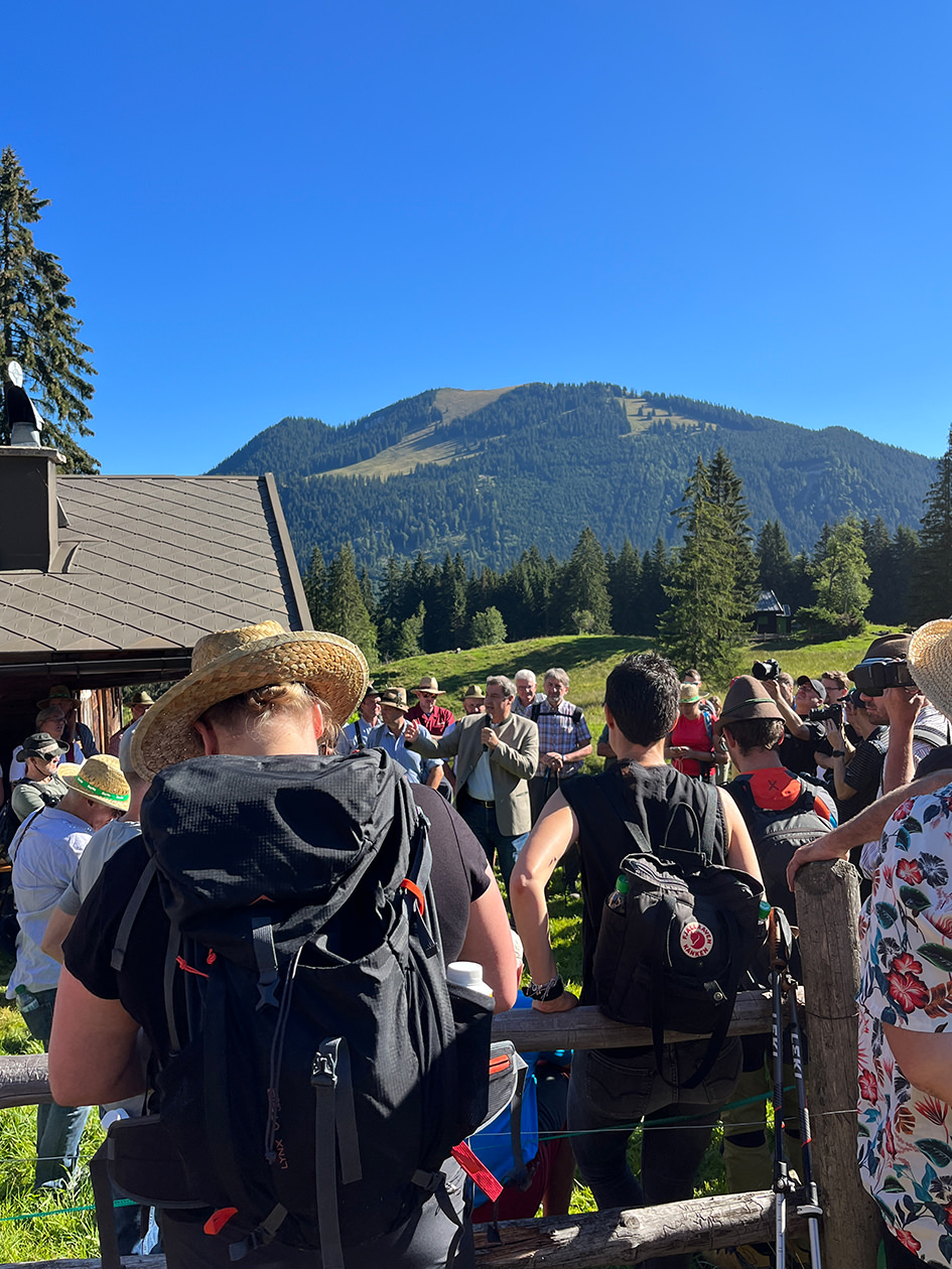 Bei der Jubiläumsbegehung des Almwirtschaftlichen Vereins Oberbayern, die dieses Jahr zum 75. Mal stattfand, informierten sich Politiker:innen über Probleme auf den Almen und nahmen sich der Anliegen der Almbauern an. Wie jedes Jahr wanderten die Bayerischen Milchhoheiten zusammen mit einigen hundert wanderfreudigen Bürgern und bayerischen Politikern wie Ministerpräsident Markus Söder, Landwirtschaftsministerin Michaela Kaniber, Umweltminister Thorsten Glauber und Landtagspräsidentin Ilse Aigner mit.