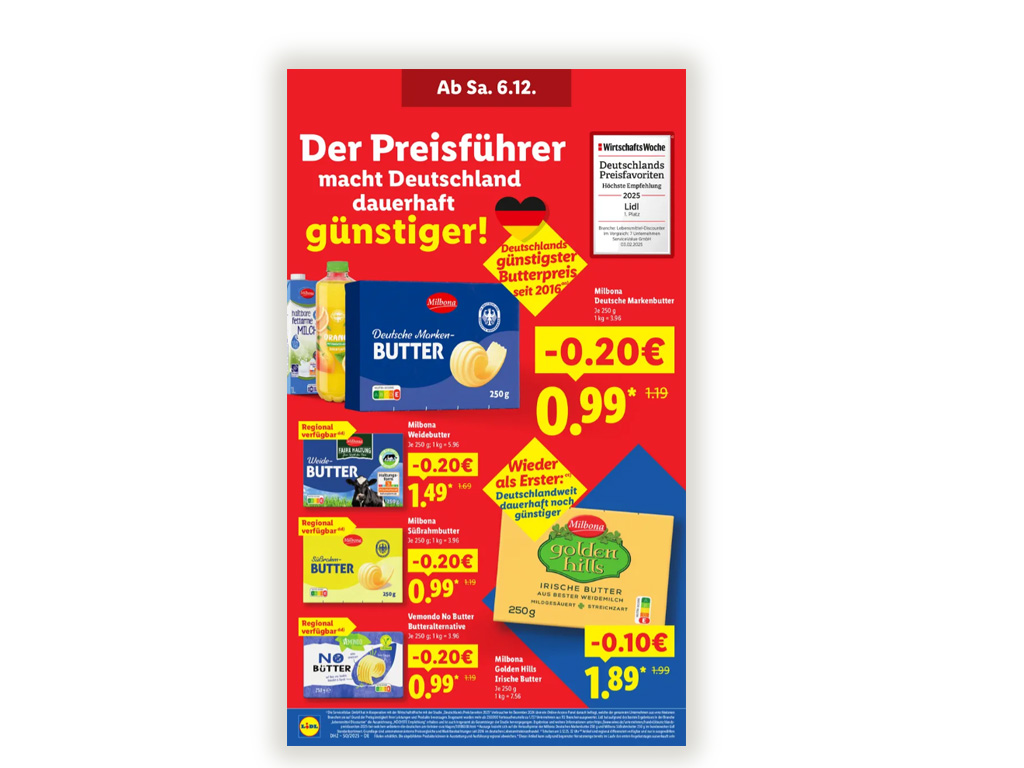 Neuerliche Preisanpassung nach unten bei Lidls Eigenmarke 'Milbona'
