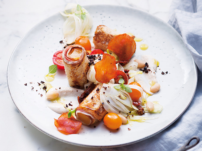 Wintersalat mit Kürbis, Zander & Molkecreme