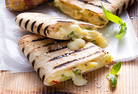 Gefüllte Käsedillas mit Kartoffeln und Hähnchenbrust