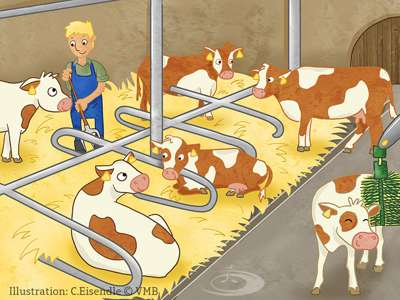 Nach ungefähr 27 bis 30 Monaten, wenn sie selbst gekalbt haben und dann auch Milch geben, können die nun erwachsenen jungen Kälber in die Milchkuhherde.