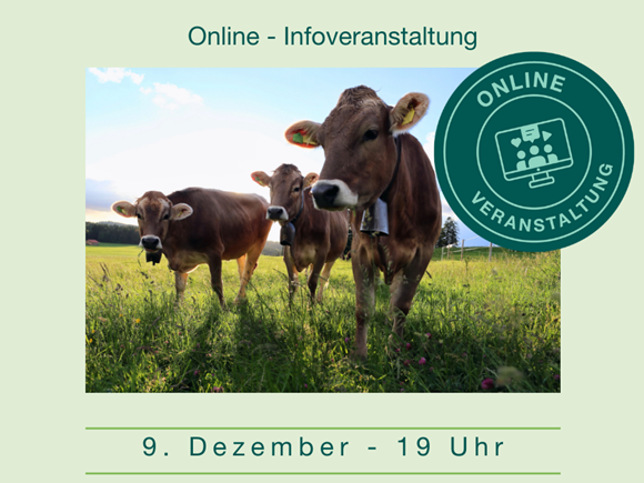 | 09.12.2025 | ![]() | “Gesunde Wiederkäuer - Starke Betriebe: Aktuelle Tierkrankheiten, neue Risiken und praktische Vorsorge”, Dr. Ulrike Sorge/TGD, 19:00 - 20:30 Uhr, Infos hier | online |