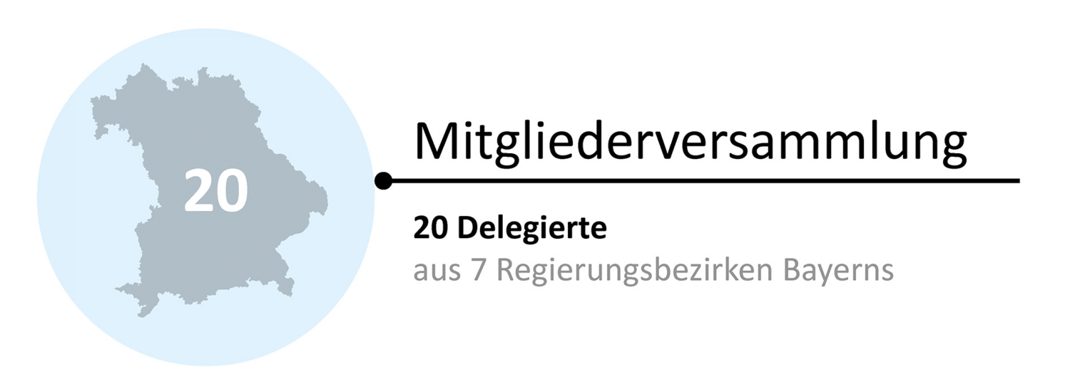 Die Mitgliederversammlung zählt insgesamt 20 Delegierte. 16 Delegierte werden nach einem in der Satzung festgelegten Schlüssel entsprechend der Milchanlieferung auf die Regierungsbezirke aufgeteilt und 4 Mitglieder werden aus dem Kreis der anerkannten bayerischen Milcherzeugergemeinschaften gewählt.